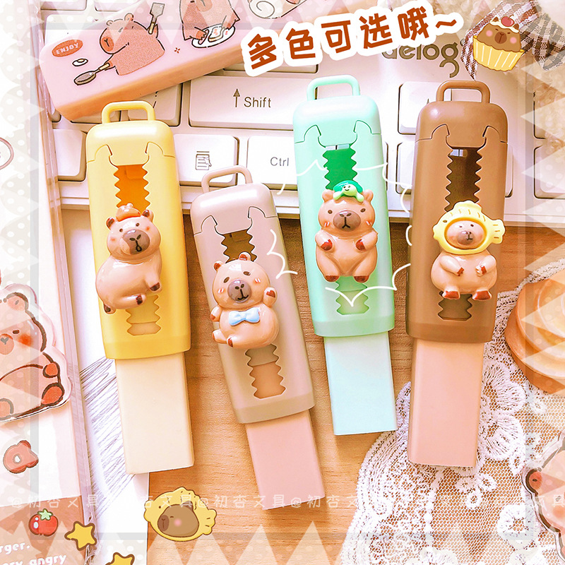 【敲可爱!卡皮巴拉推拉橡皮】卡通可爱学生可换芯伸缩橡皮擦干净少屑橡皮擦。ry