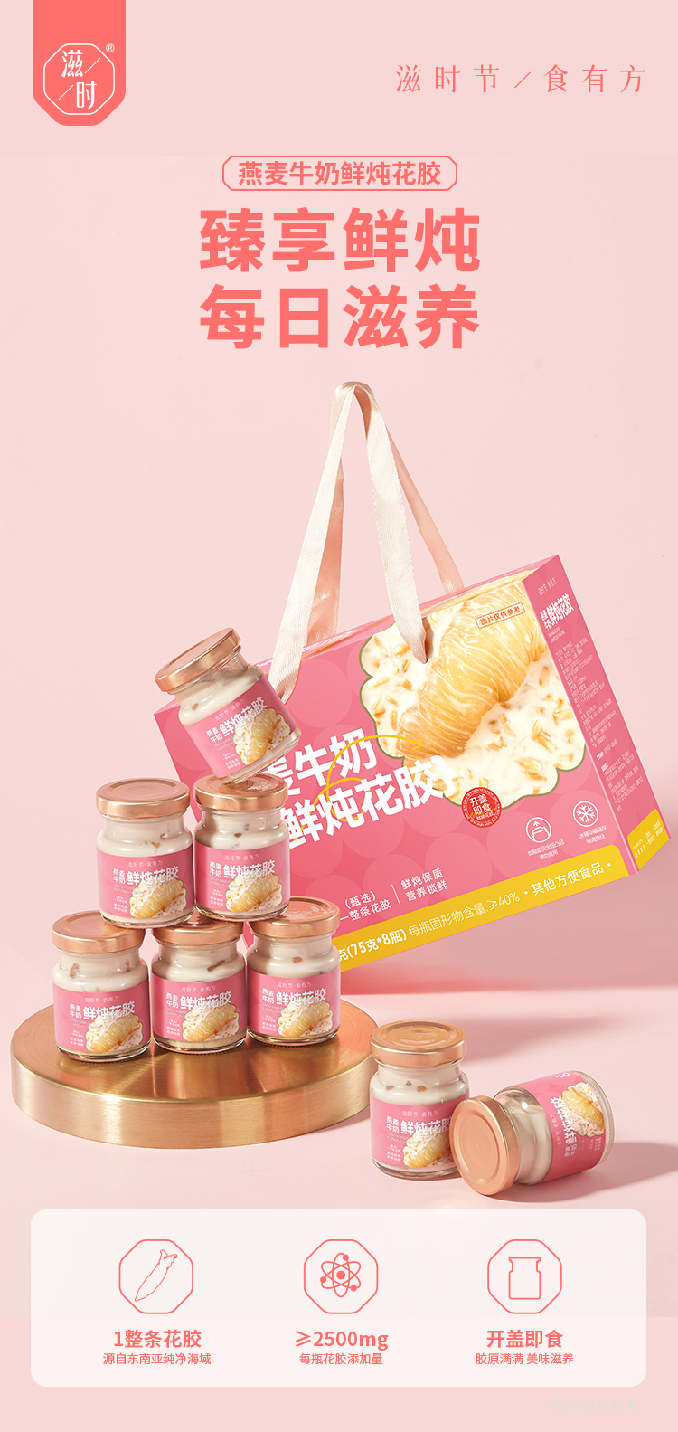 ⁴39.9元/8杯【燕麦牛奶鲜炖花胶】 花胶+纯牛奶+燕麦 开盖即食 75g/瓶 YC04-CR-ZSSC