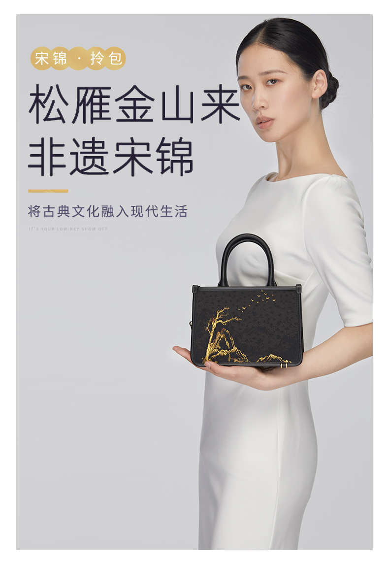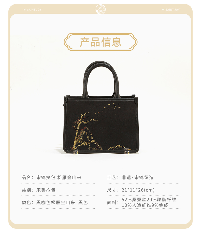 SAINTJOY/上久楷 宋锦女式拎包 松雁金山来 BWW22A1001