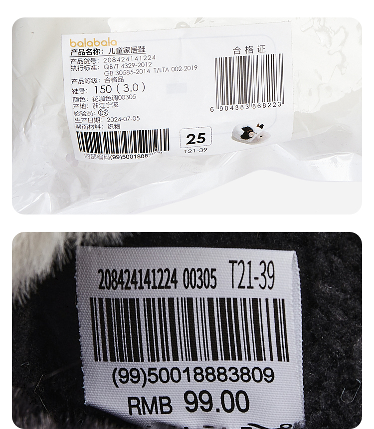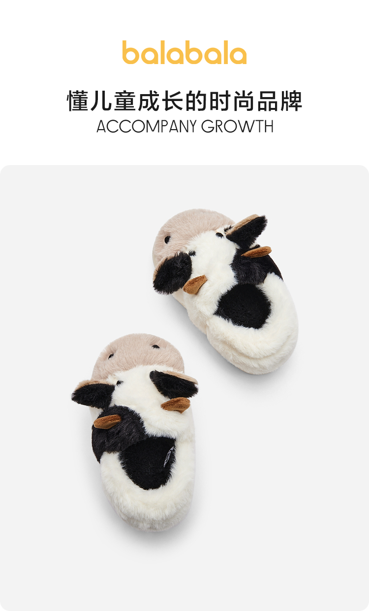 巴拉巴拉儿童棉拖鞋包跟男童女童毛绒动物棉鞋秋冬新款家居鞋