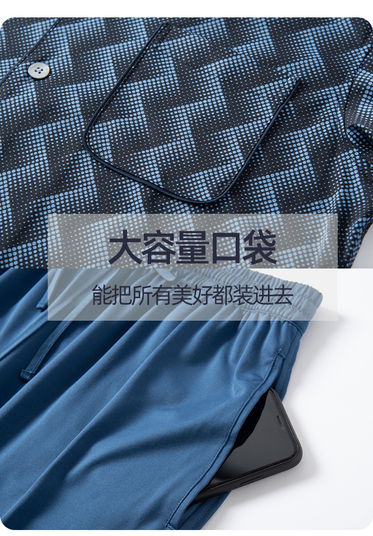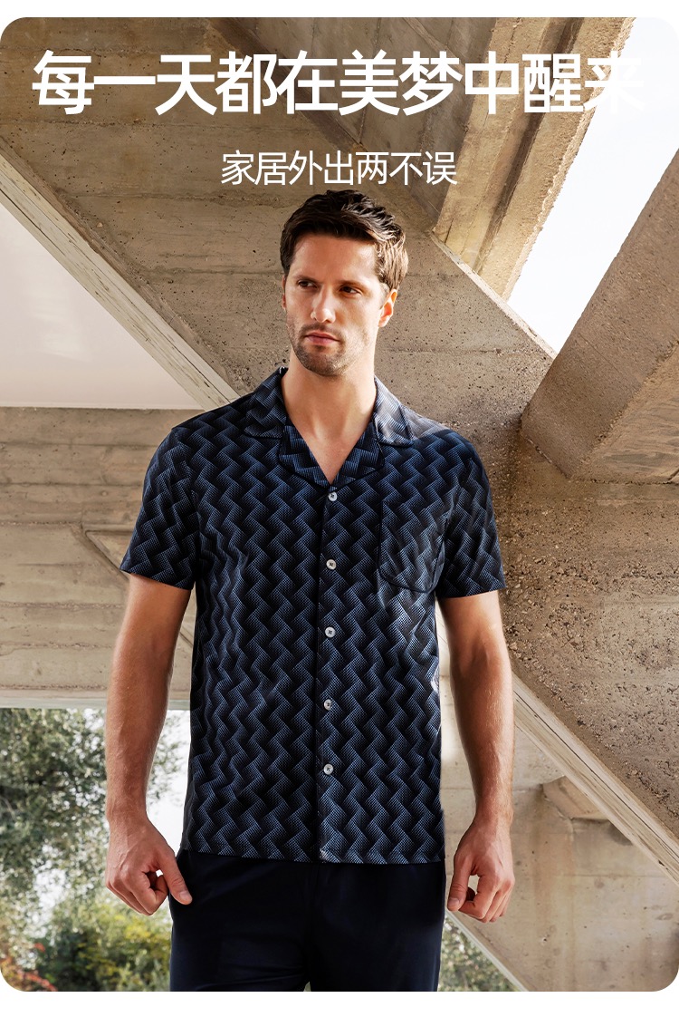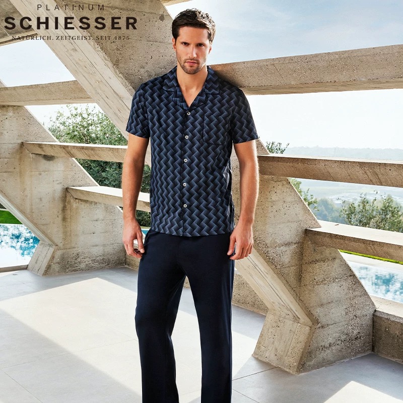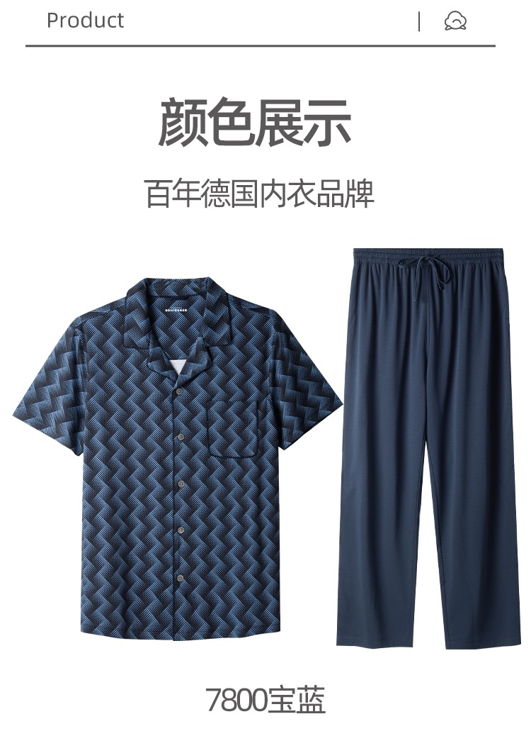 【100%丝光棉】SCHIESSER 德国舒雅铂雅翻领开衫100%丝光棉短袖长裤套装 99/19533H