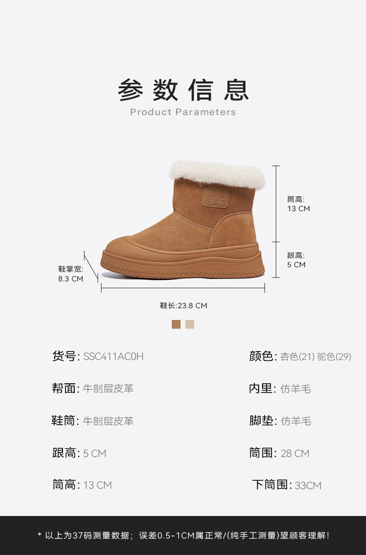 星期六时尚百搭保暖厚绒防滑雪地靴SSC411AC0H