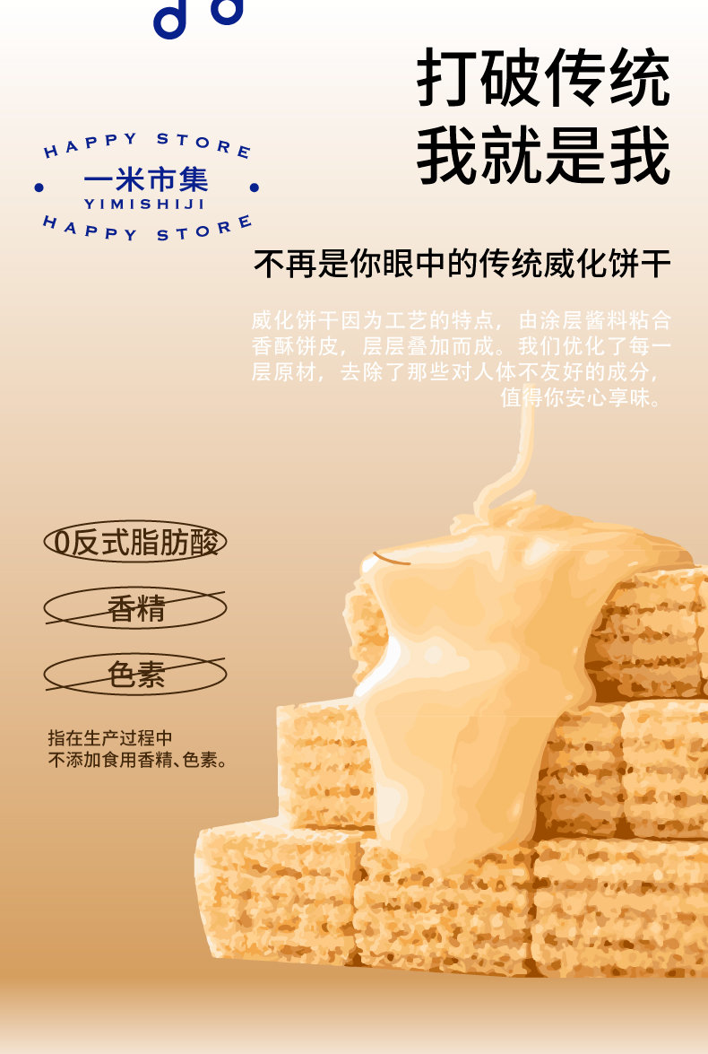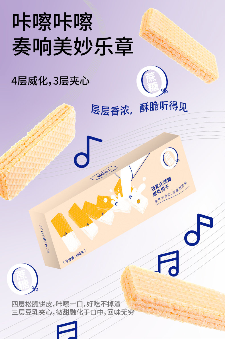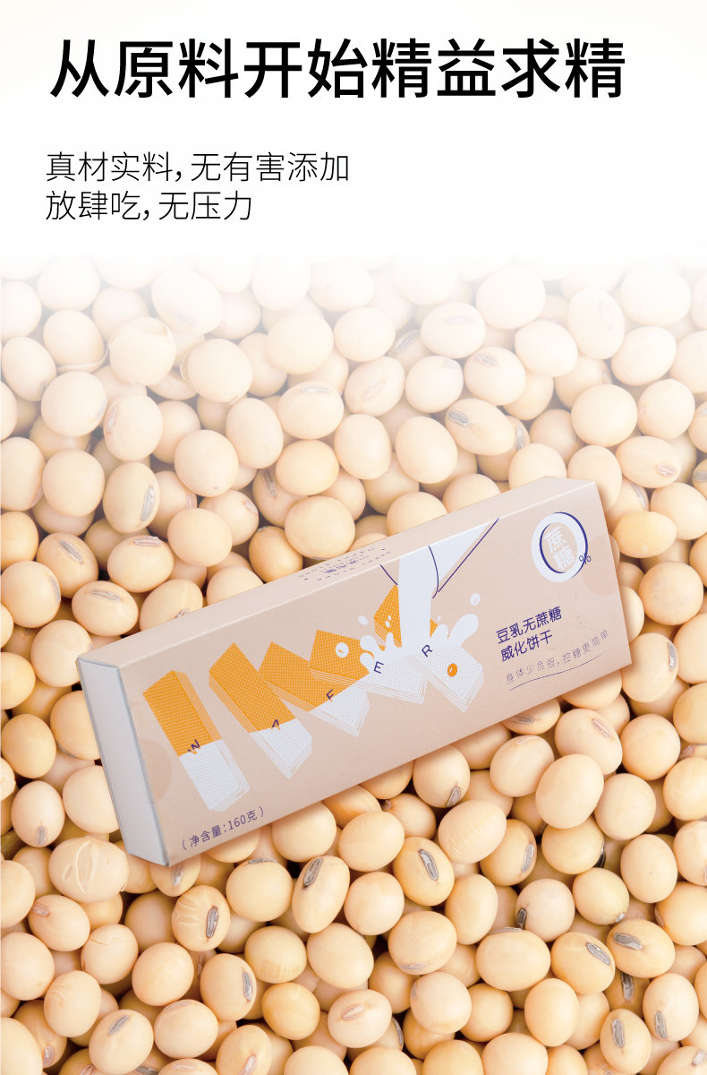 一米市集严选 豆乳无蔗糖威化饼干160g/盒*2 无反式脂肪酸 酥脆清甜