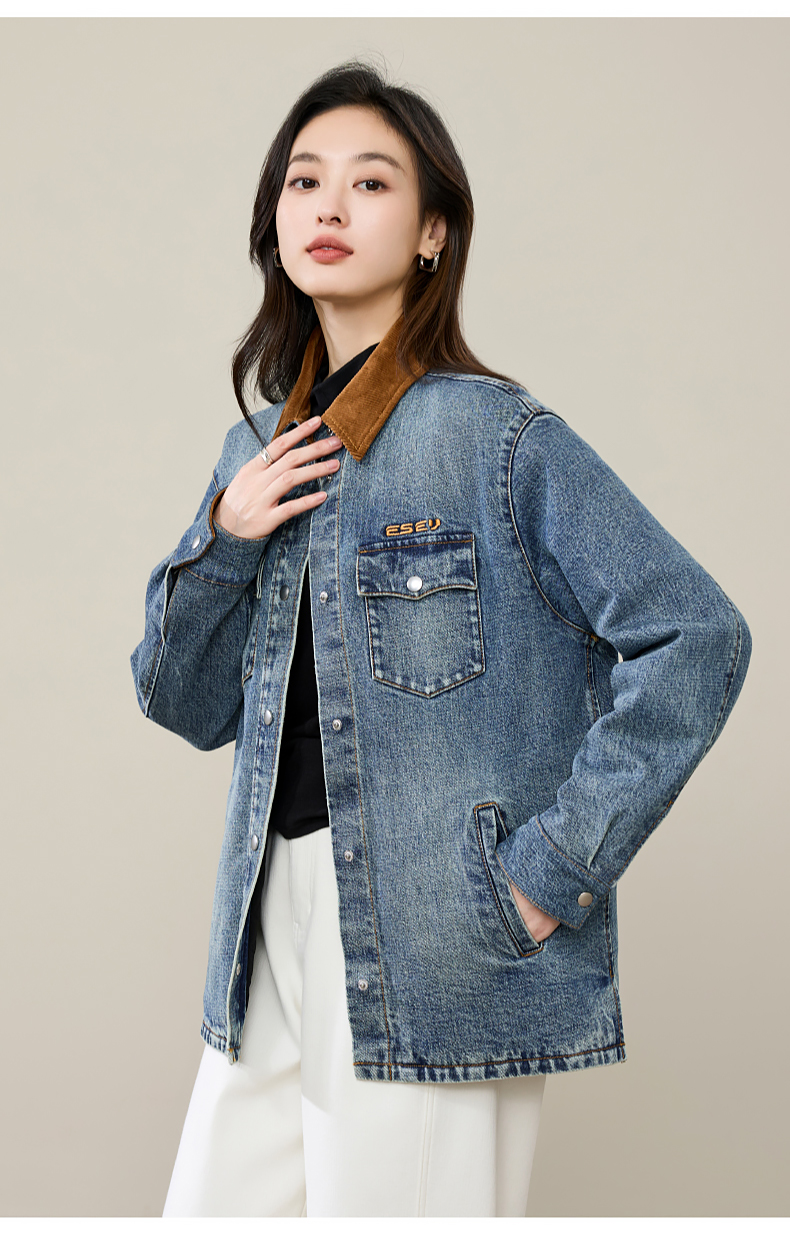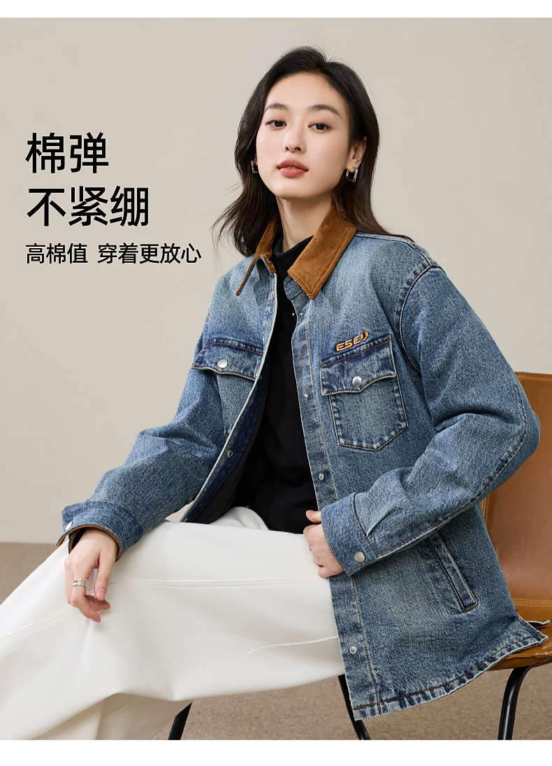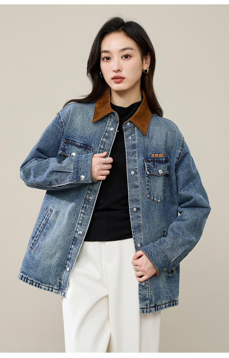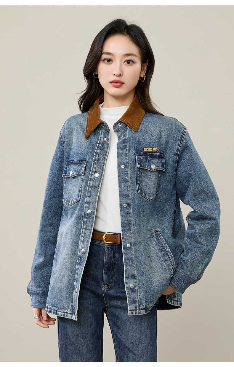 【初春穿-轻奢款-加厚-牛仔外套】逸阳时尚撞色翻领长袖衬衫上衣5207