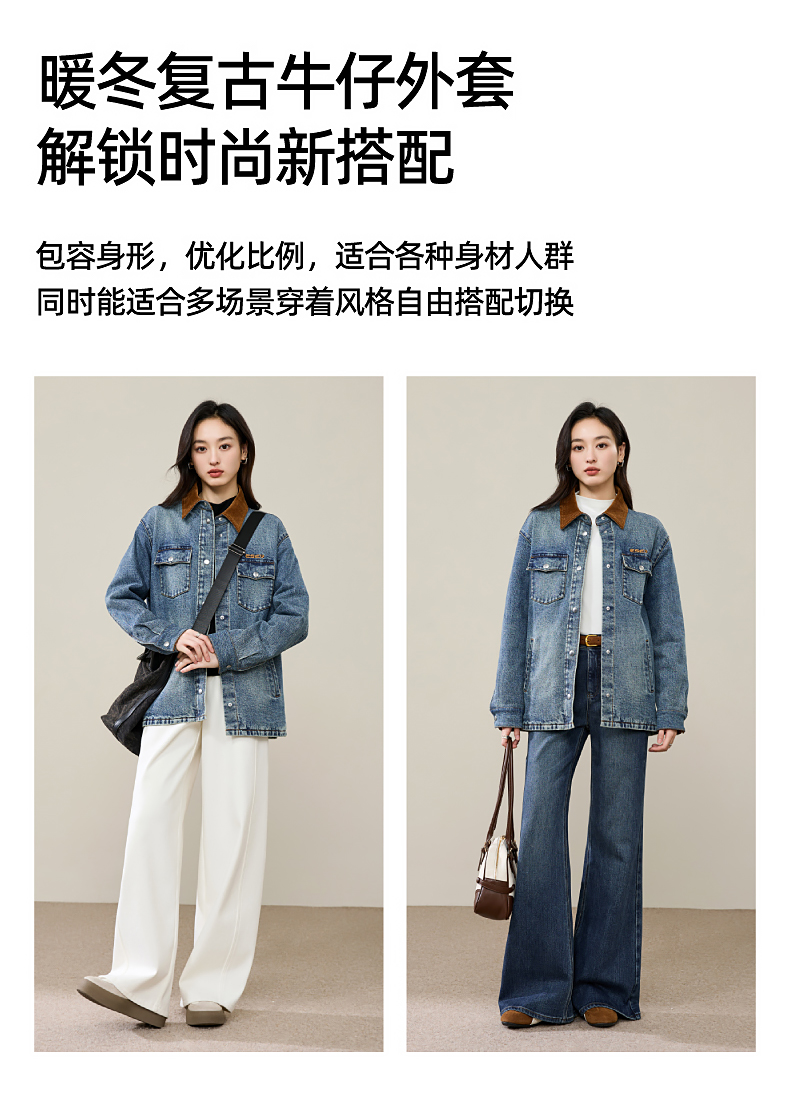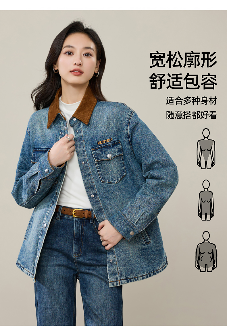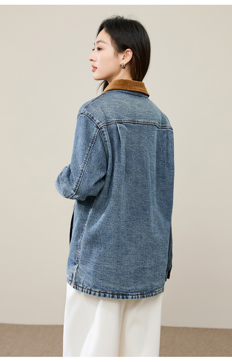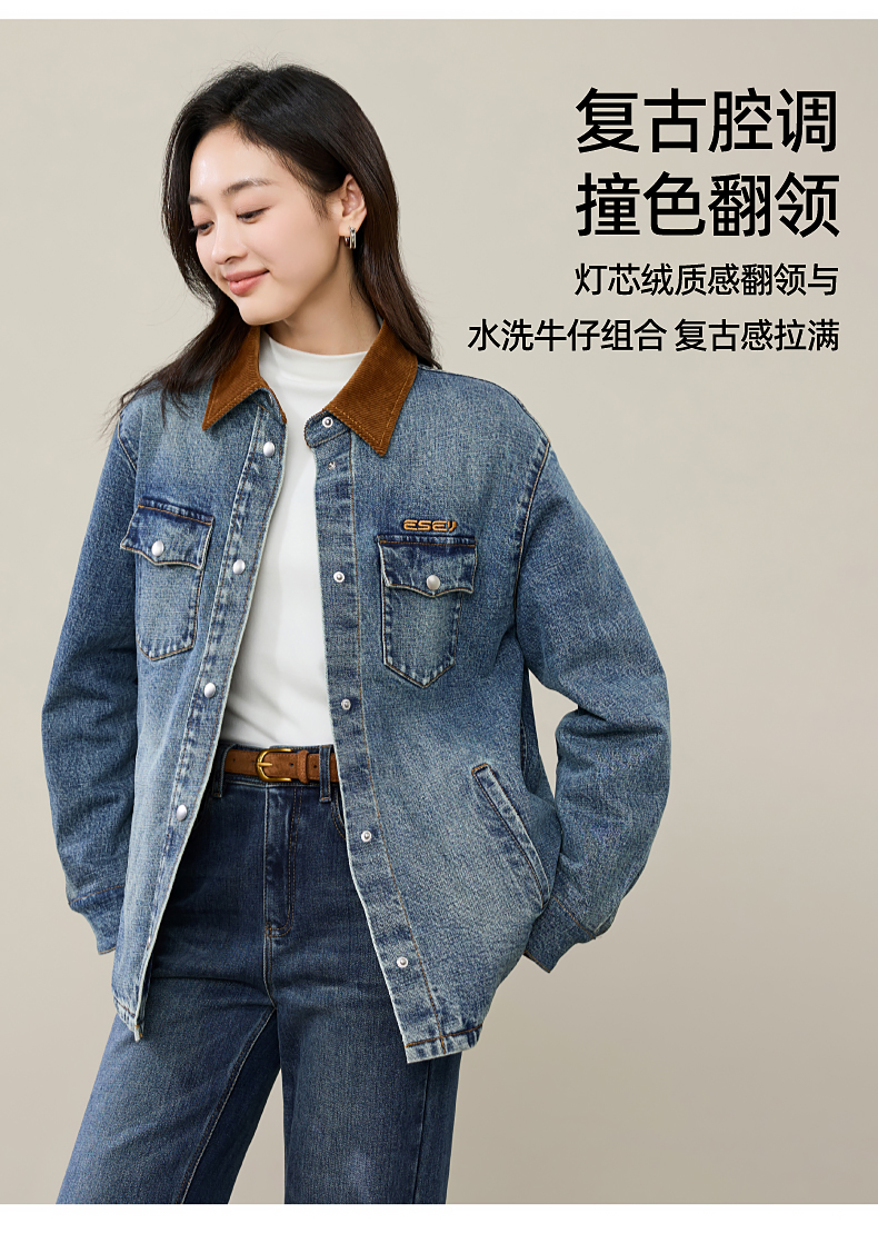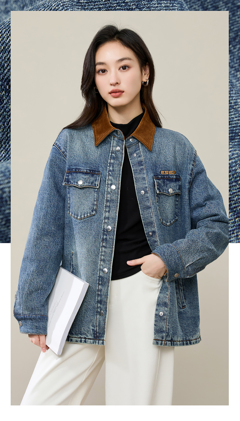 【初春穿-轻奢款-加厚-牛仔外套】逸阳时尚撞色翻领长袖衬衫上衣5207