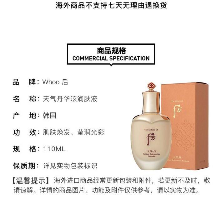 【中欧班列精选】 韩国Whoo/后 天气丹乳 110ml 正品保证【超值购】Y BFT