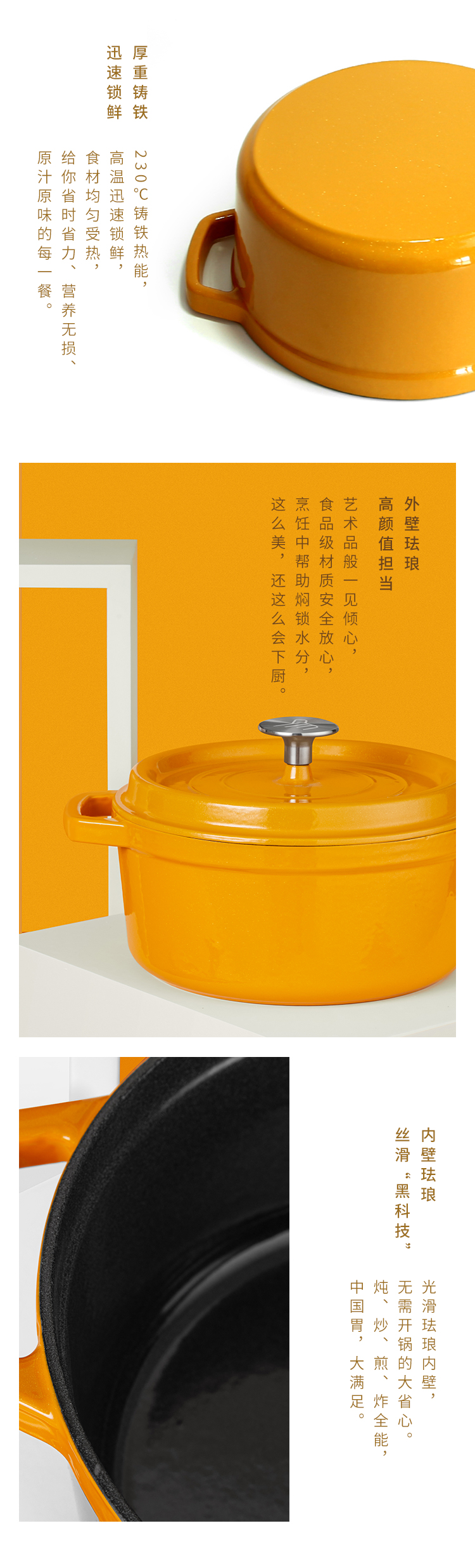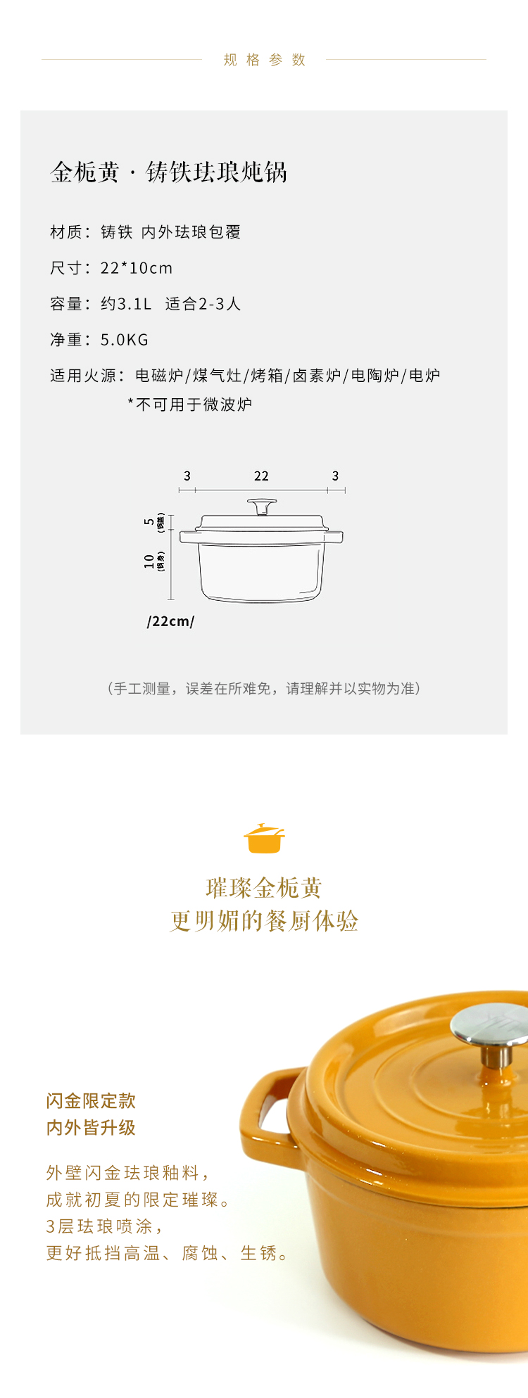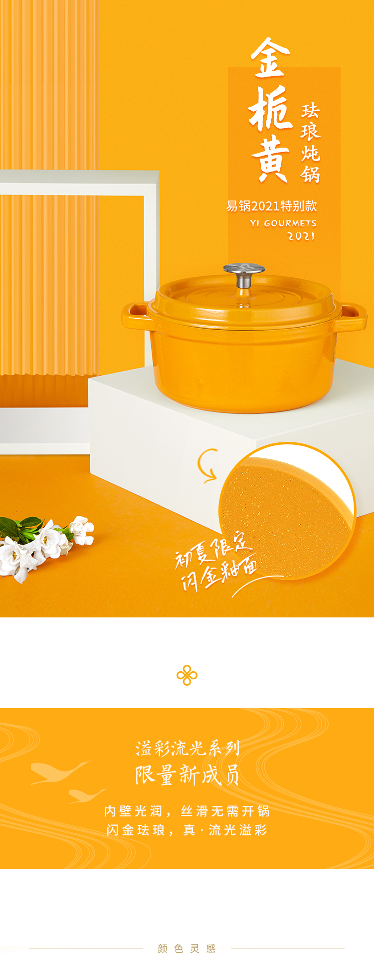 【外运团 每周一发货】易锅丨金栀黄闪金珐琅锅 22cm经典炖锅 不开锅内壁