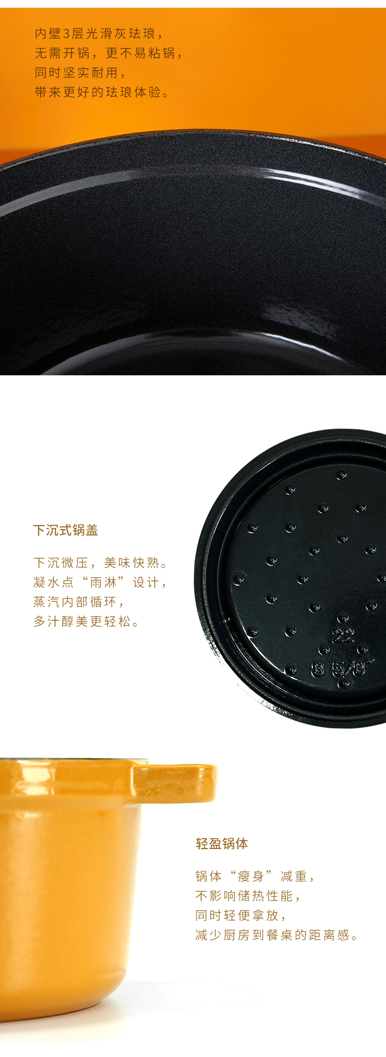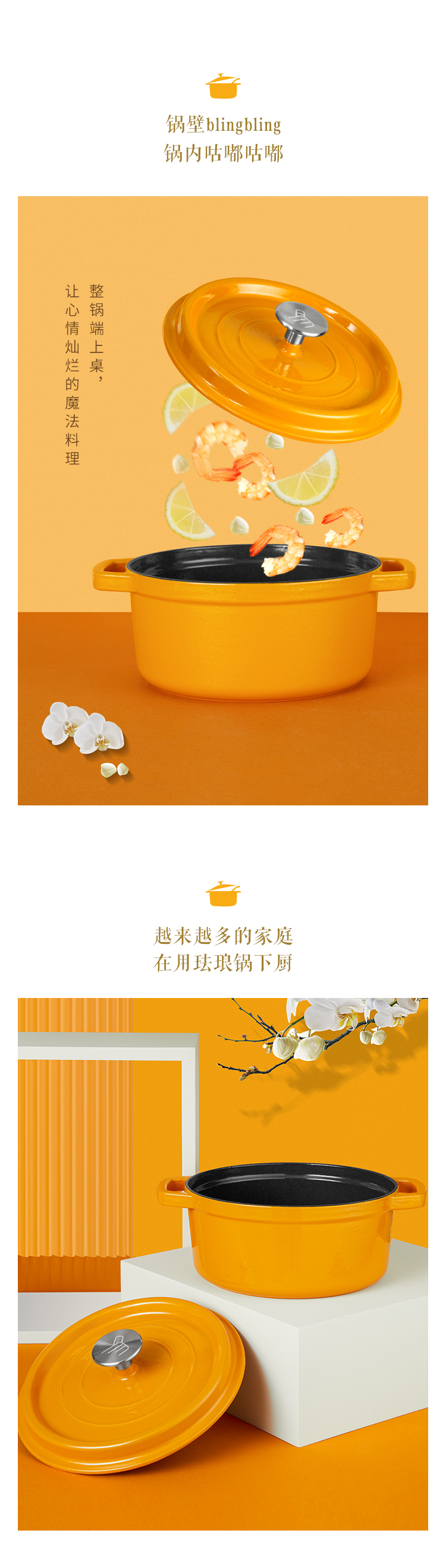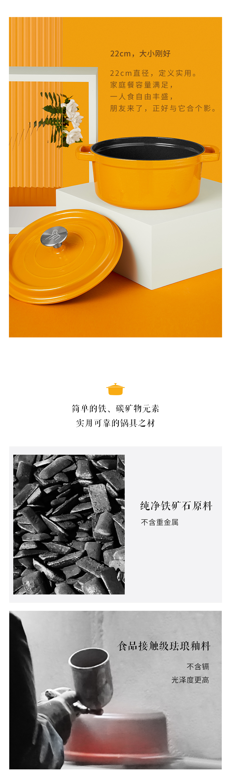 【外运团 每周一发货】易锅丨金栀黄闪金珐琅锅 22cm经典炖锅 不开锅内壁