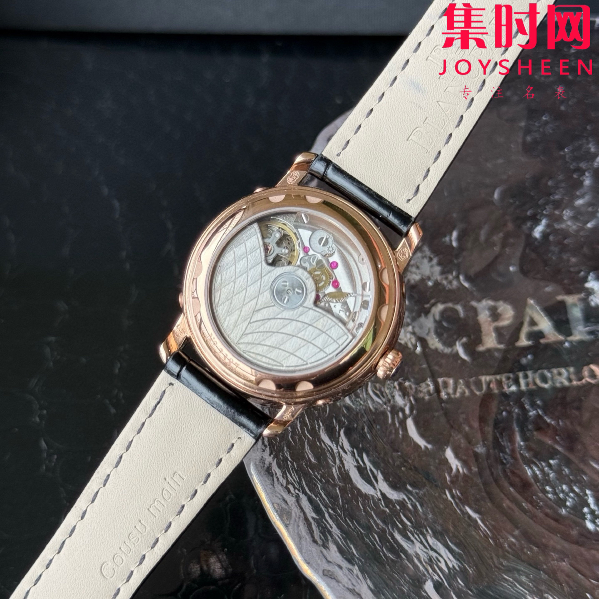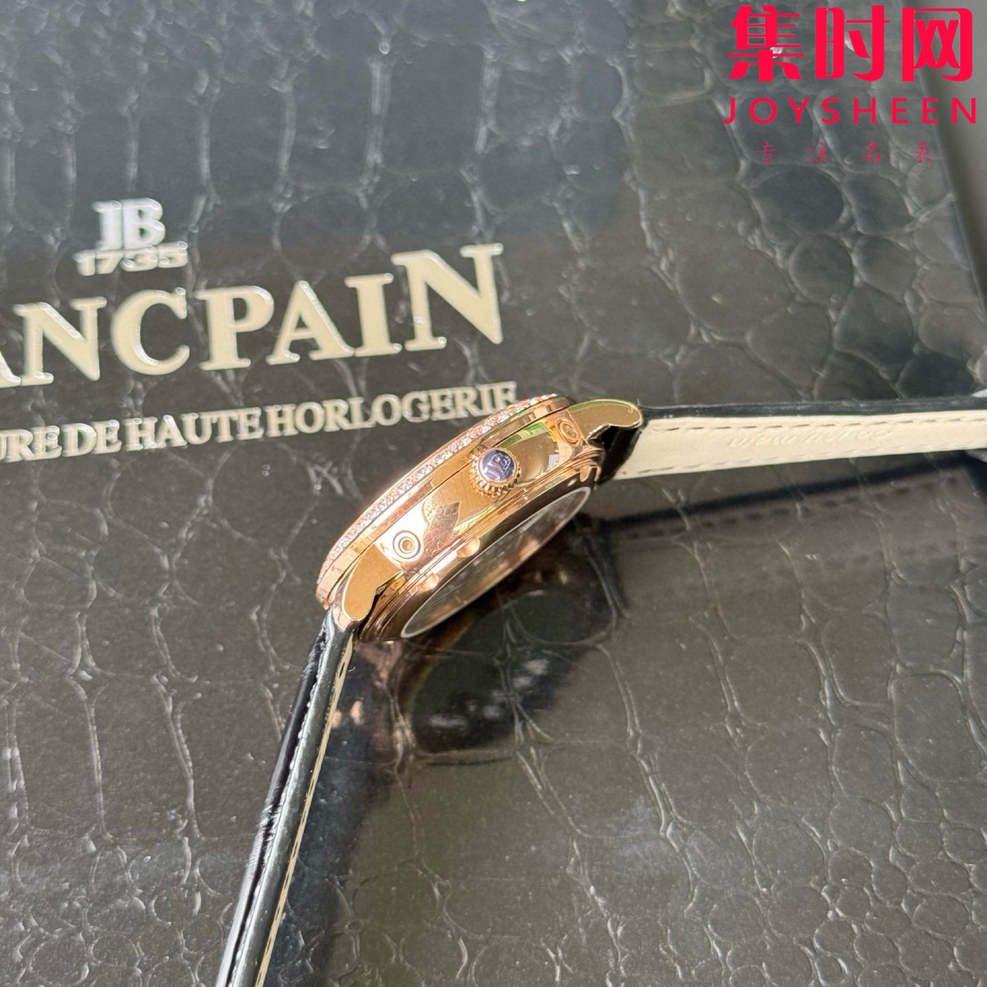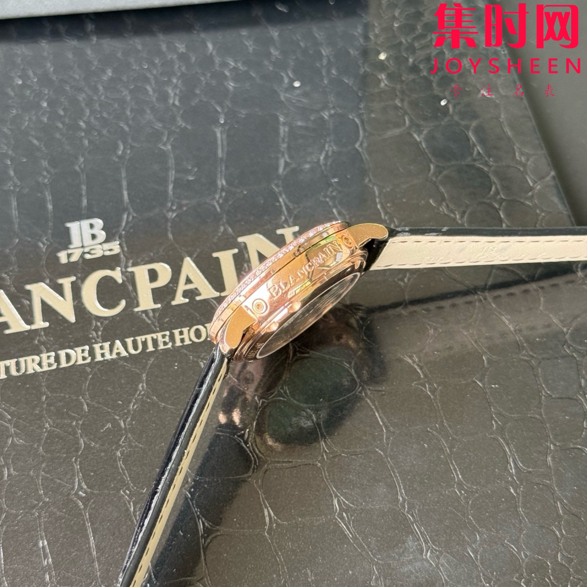 ·皮带采用进口鳄鱼皮,表扣则与表壳同材质的原装折叠扣