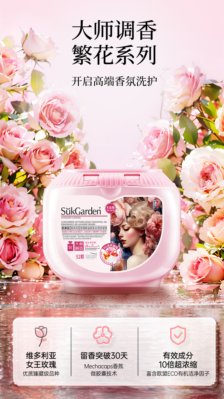 蔬果园 大师调香维多利亚玫瑰精油香氛4D洗衣凝珠10g*52颗