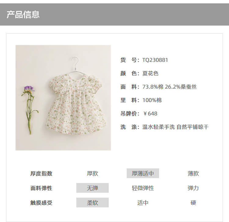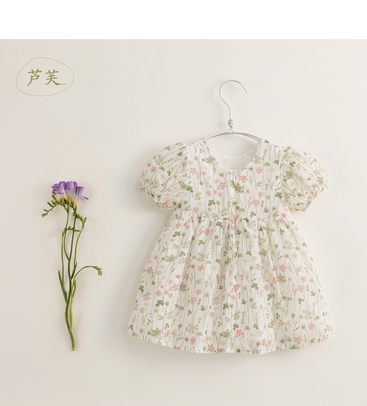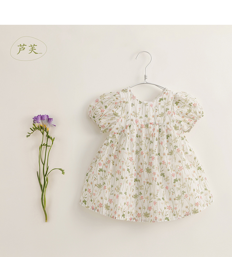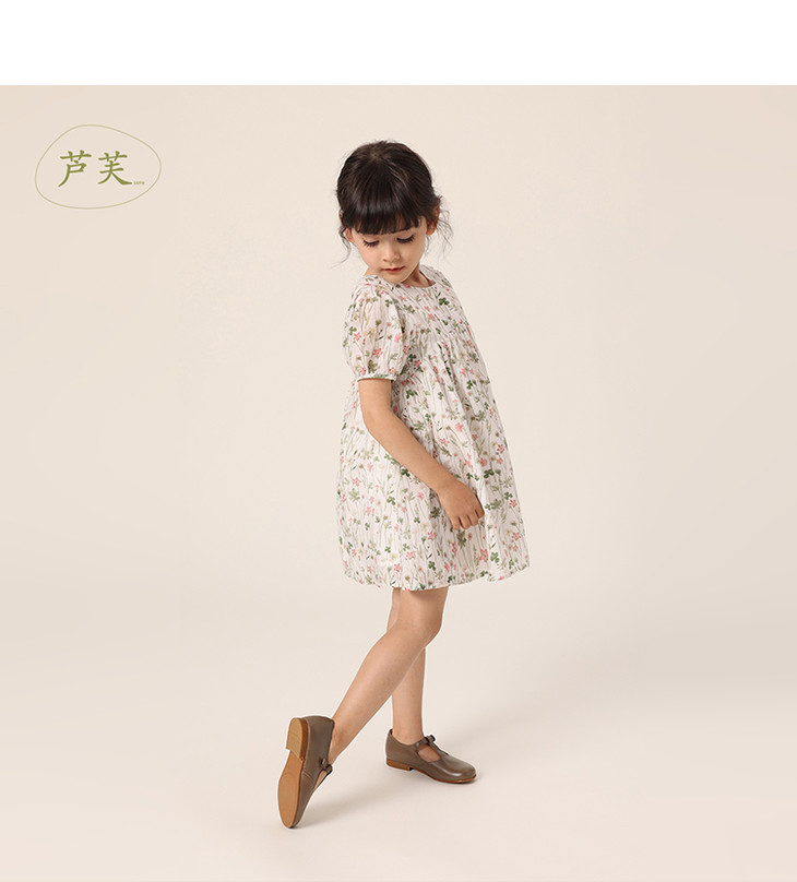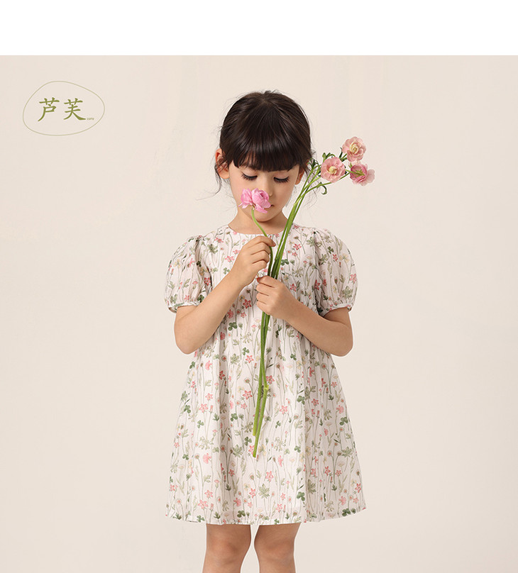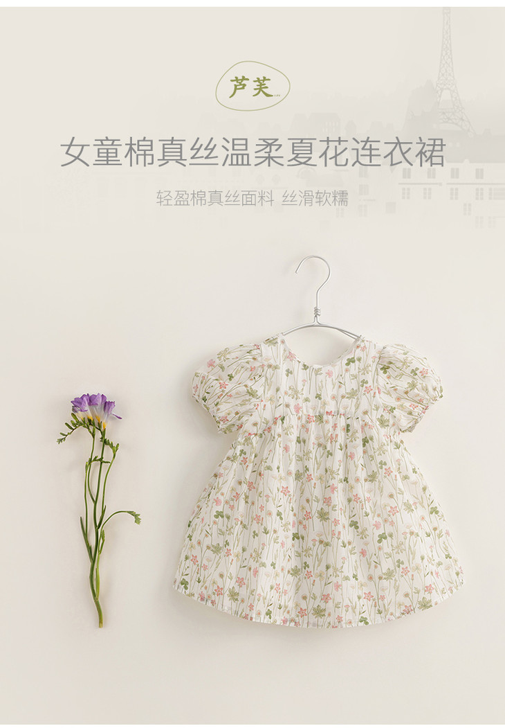 【马克珍妮 芦芙】夏装新款 女童棉真丝温柔夏花连衣裙230881