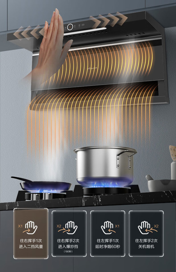 万和(510529)(Vanward)CXW-310-L08SE顶侧双吸 挥手智控 大吸力油烟机