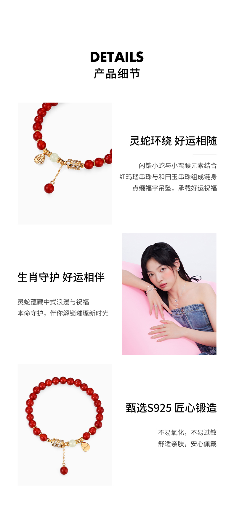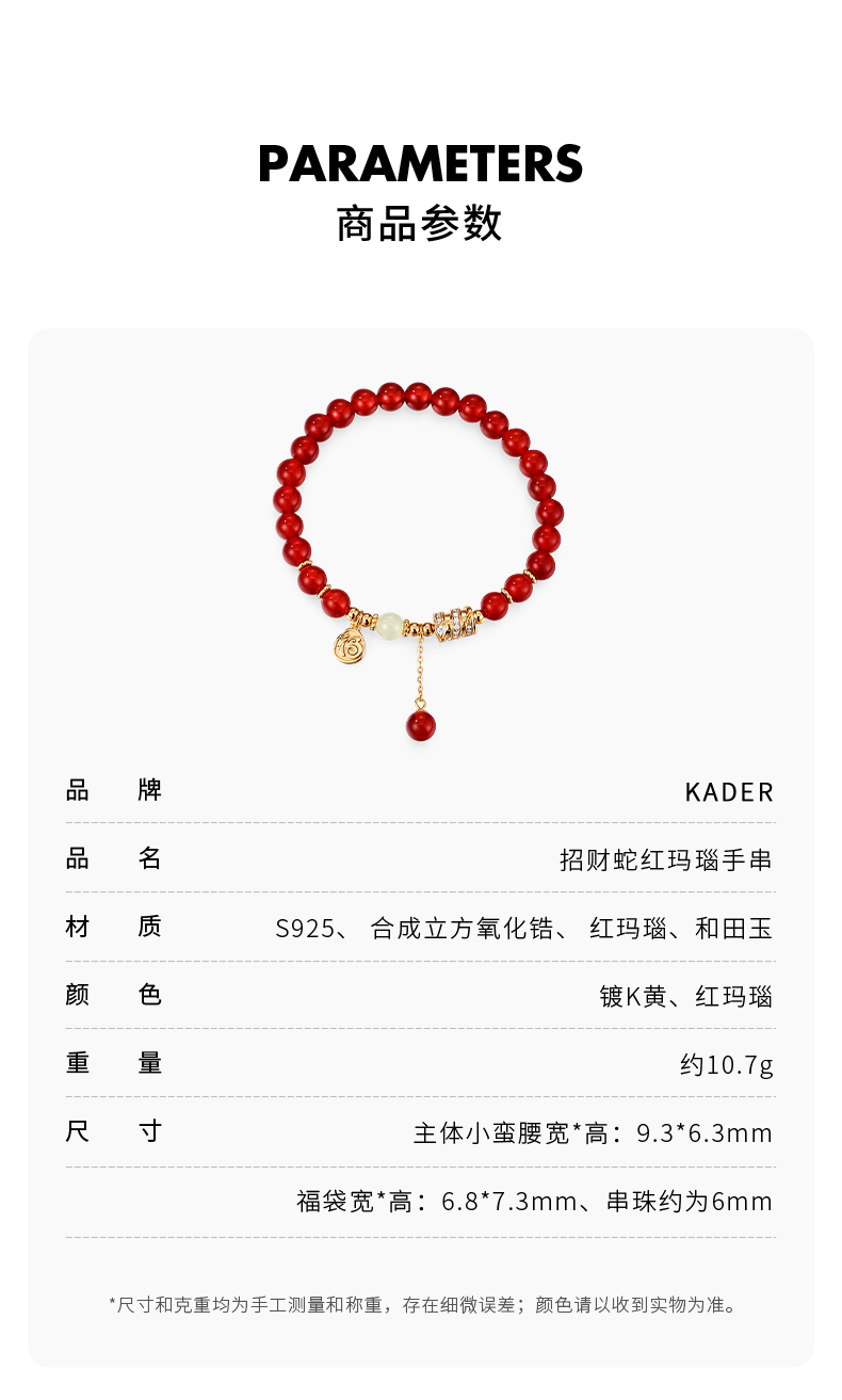 KADER卡蒂罗 平安喜乐系列 招财蛇 新中式 国潮小蛮腰转运输手饰 玛瑙手串女款 本命年礼物
