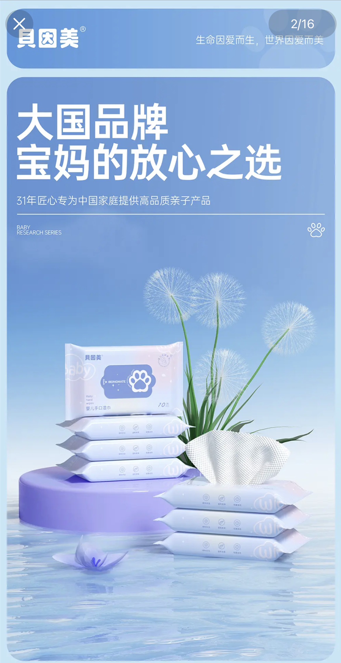 【59元任选6件】贝因美婴儿手口湿巾蓝粉款(10片)* 5包