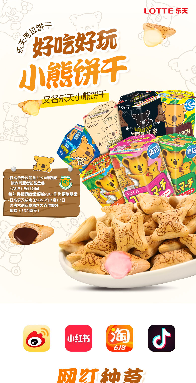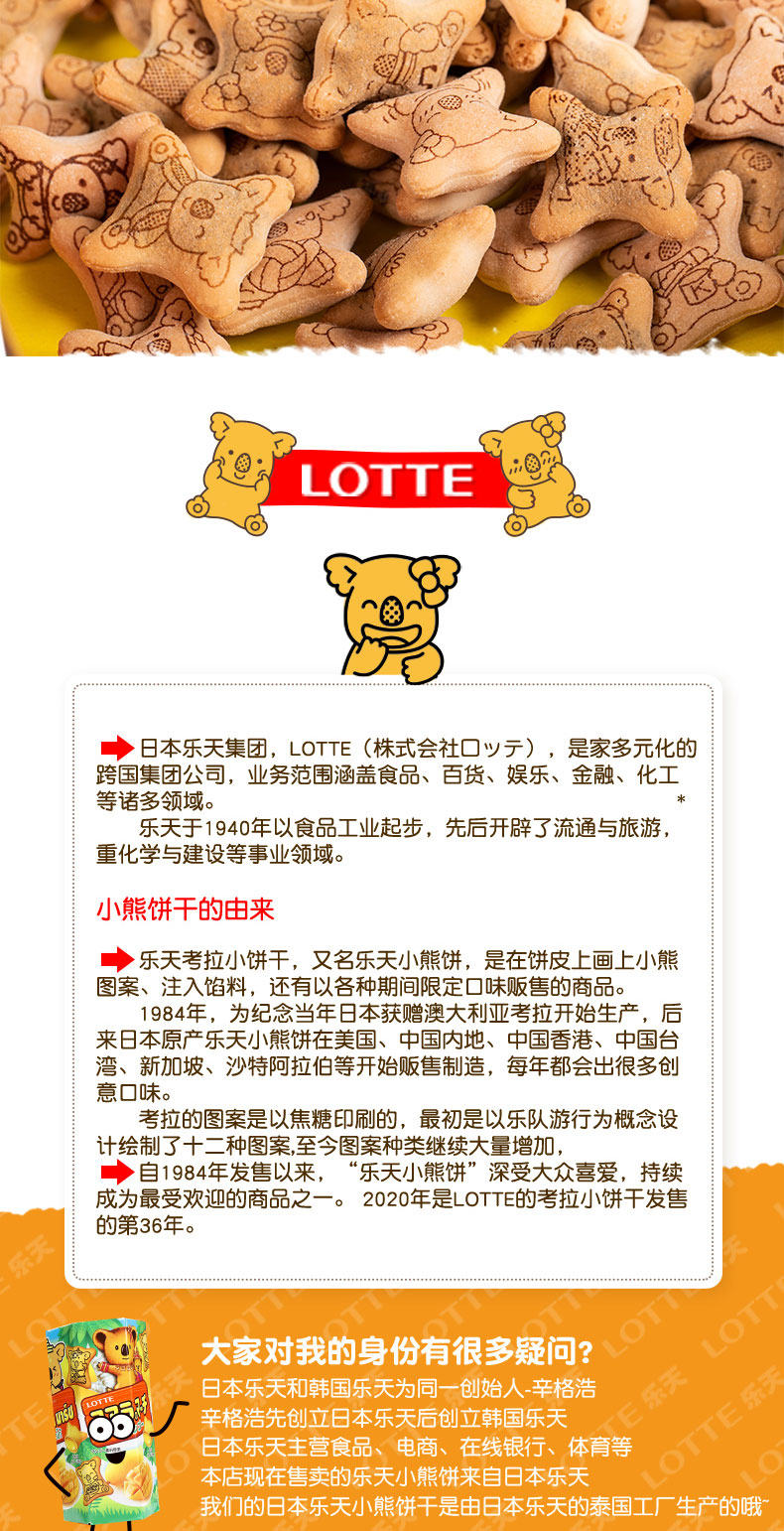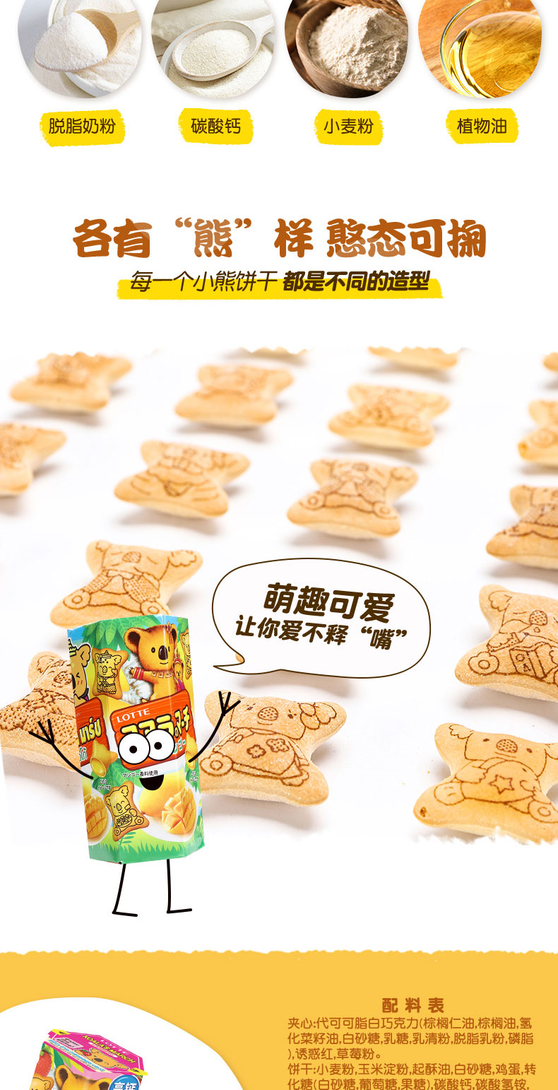 乐天LOTTE小熊饼干37克*6盒草莓味