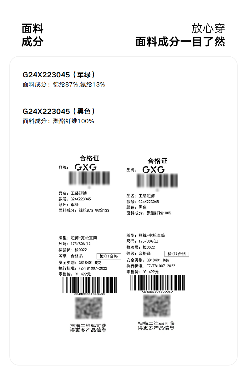 GXG男装 双色宽松直筒工装短裤休闲短裤男裤子 24年秋G24X223045