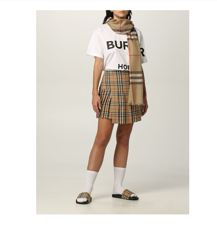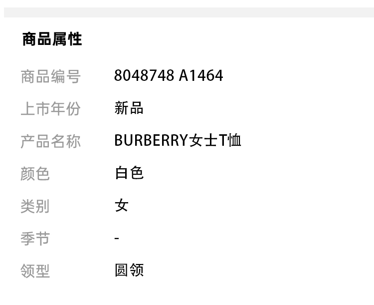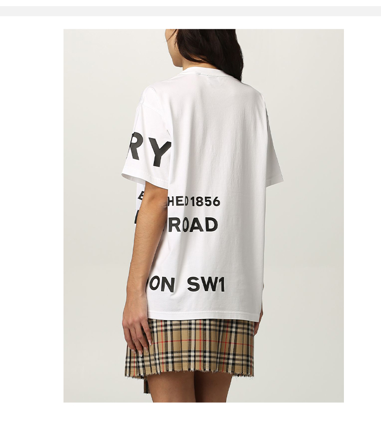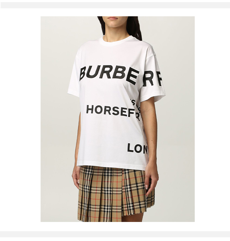 BURBERRY 博柏利 Horseferry 印花棉质宽松 T 恤衫 女士圆领短袖T恤 白色 8048748 A1464