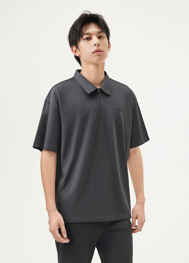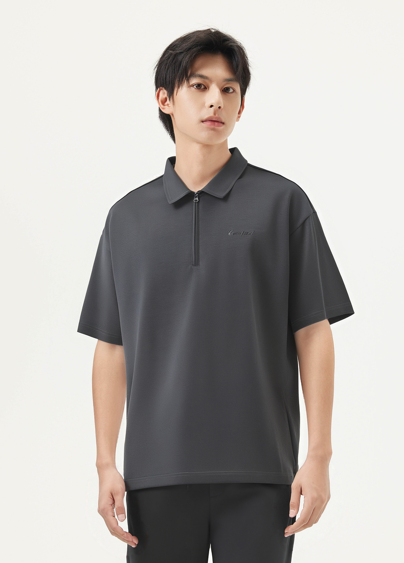 gxg.jeans男装 字母绣花简约宽松半拉链翻领短袖POLO衫 25夏热卖