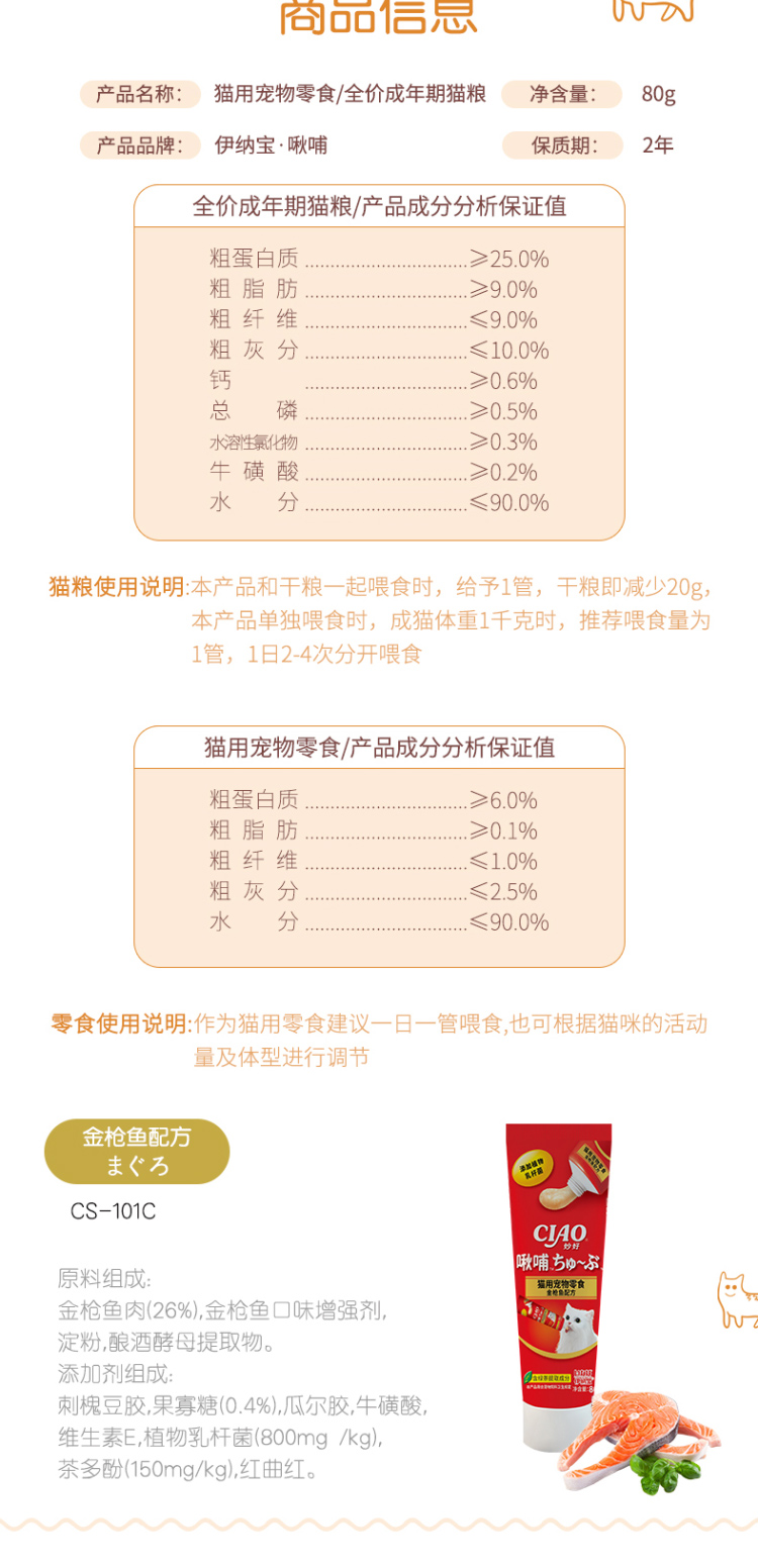 伊纳宝金味道杯猫湿粮罐头80g*6罐