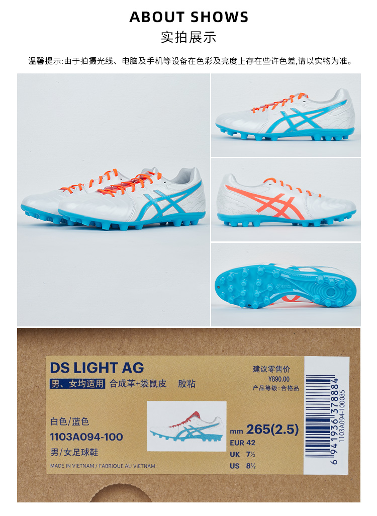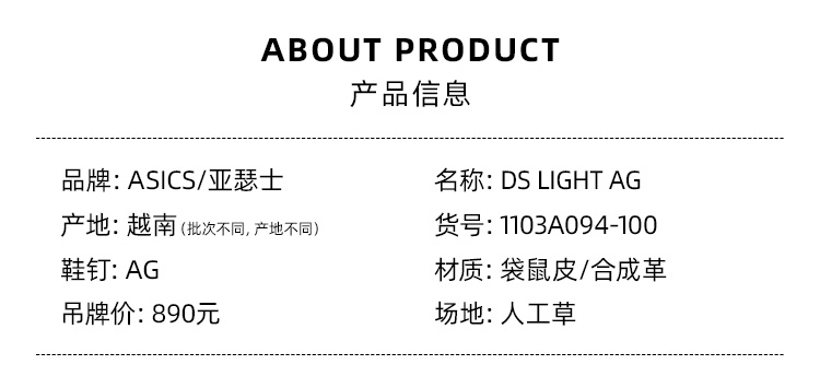 SFS亚瑟士DS LIGHT高端AG短钉袋鼠皮缓震足球鞋男1103A094-100