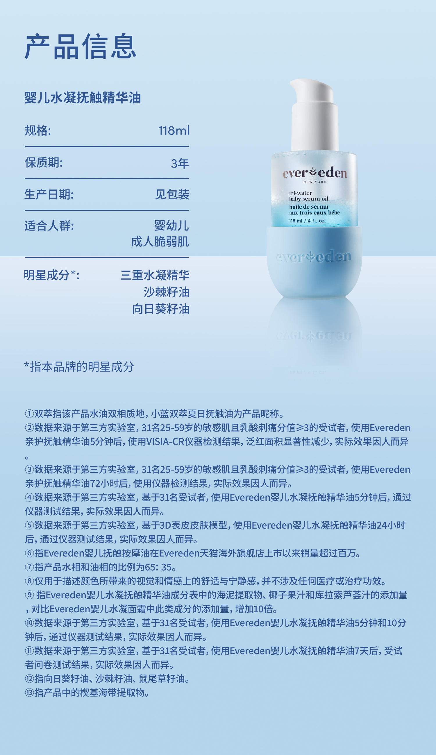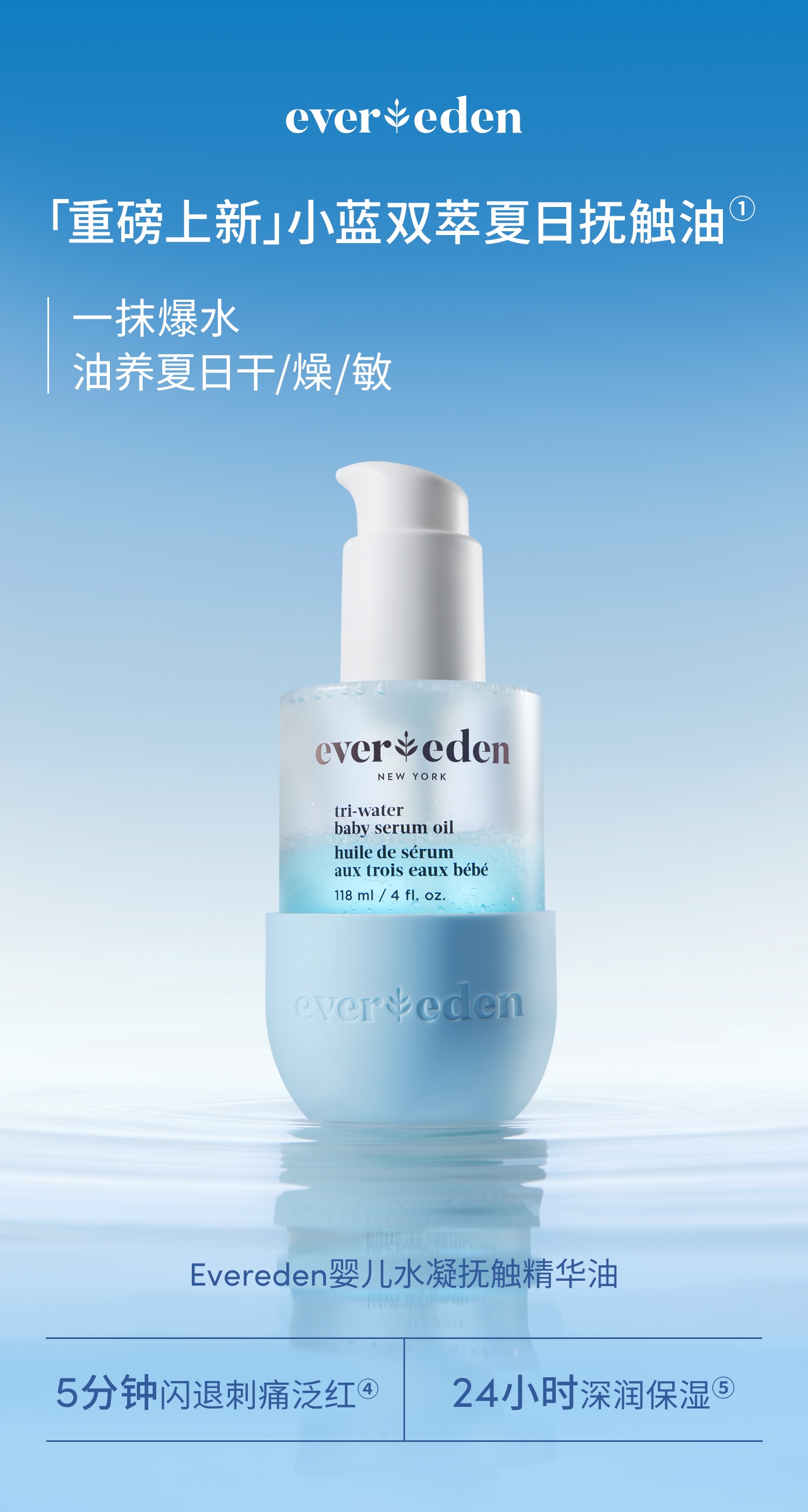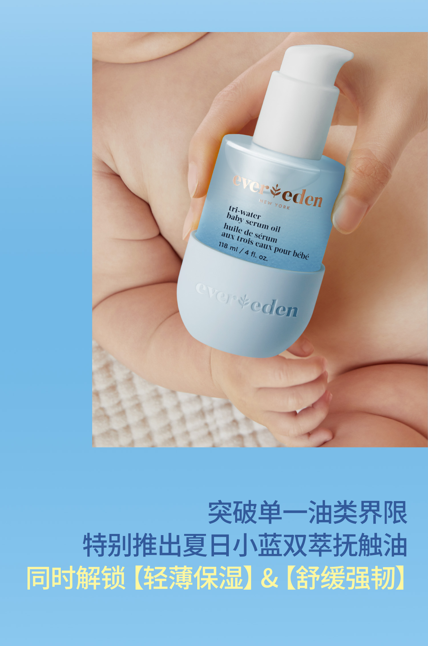 【套组】Evereden安唯伊婴儿小蓝系列水凝舒缓爽身精华露118ml+小蓝水凝抚触按摩精华油118ml
