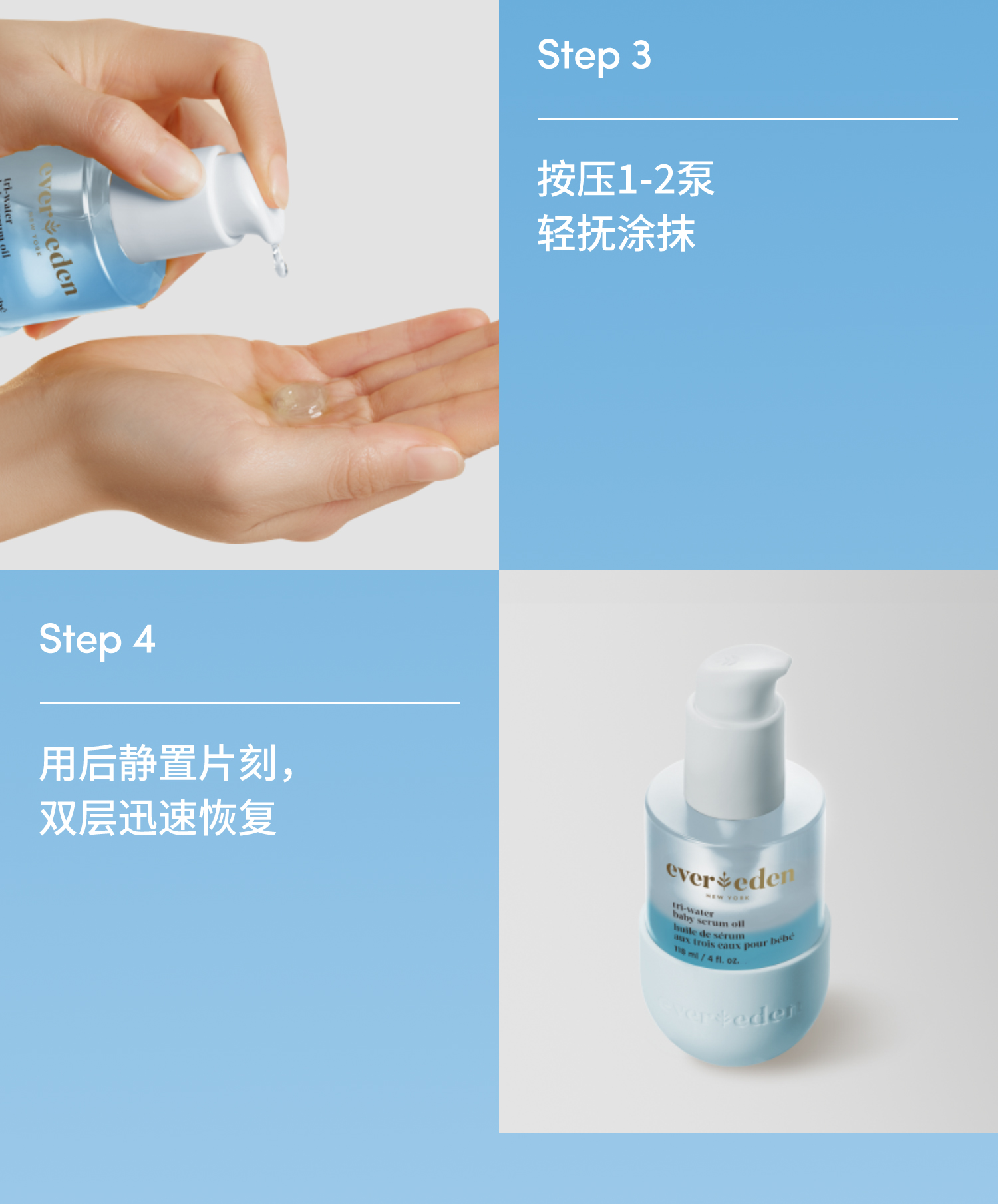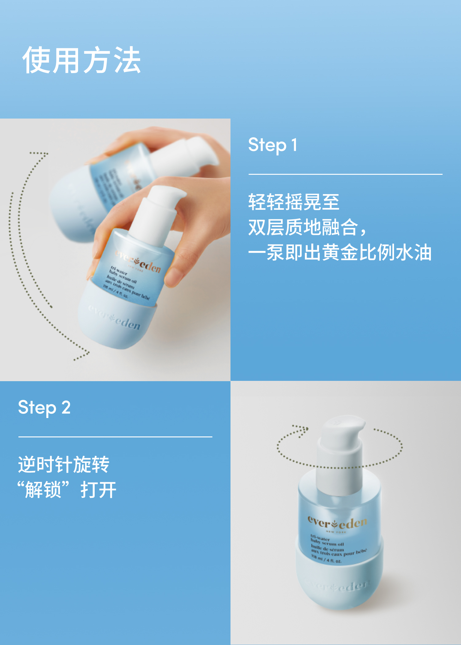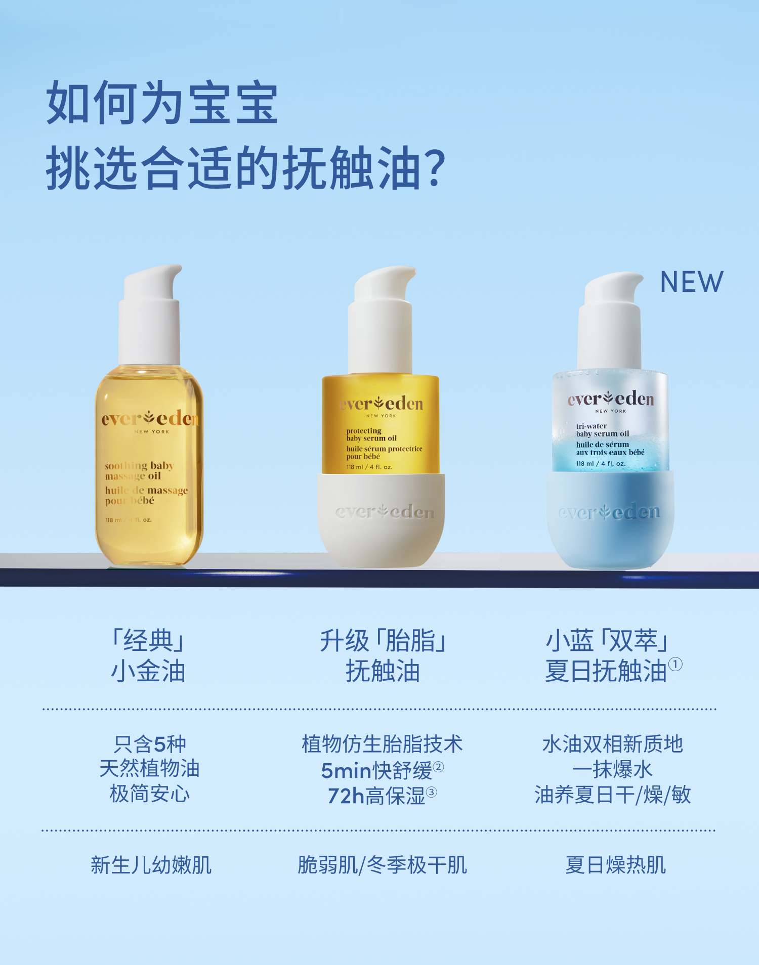 【套组】Evereden安唯伊婴儿小蓝系列水凝舒缓爽身精华露118ml+小蓝水凝抚触按摩精华油118ml