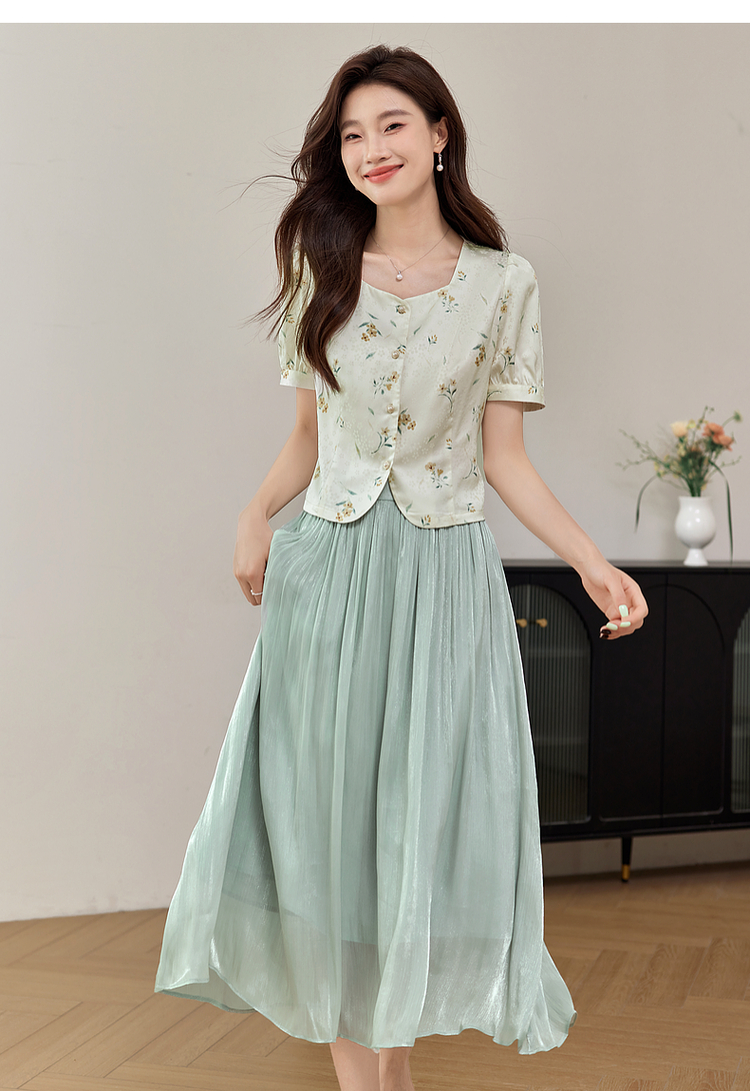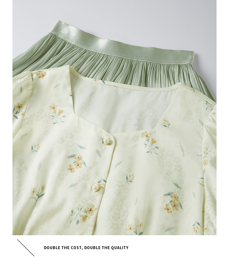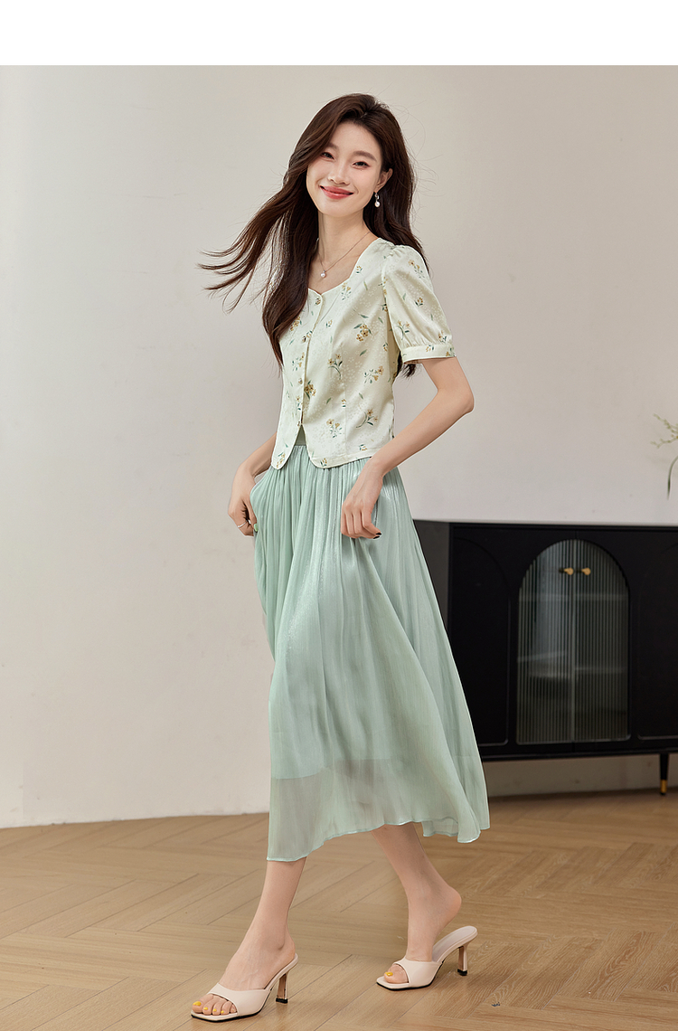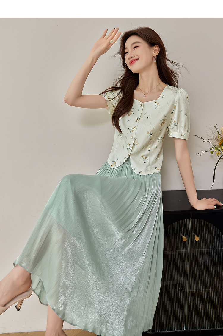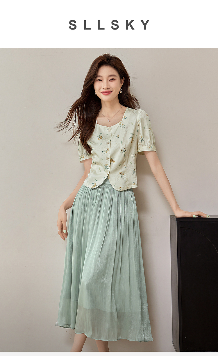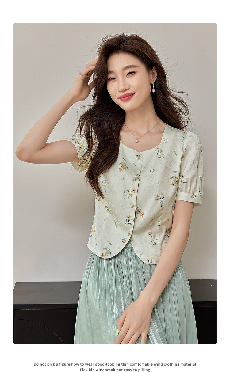 【专属特价】熙世界法式方领碎花雪纺衬衫2025夏日新款小个子泡泡袖短款上衣