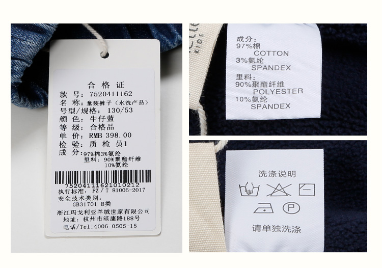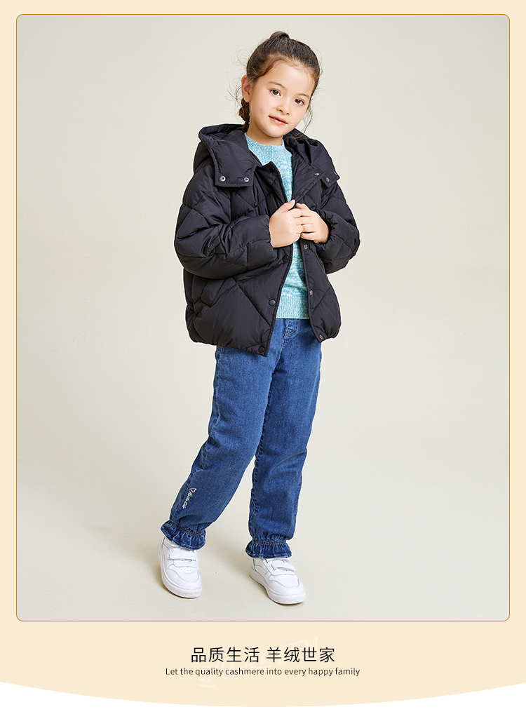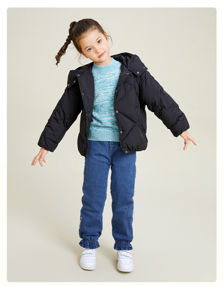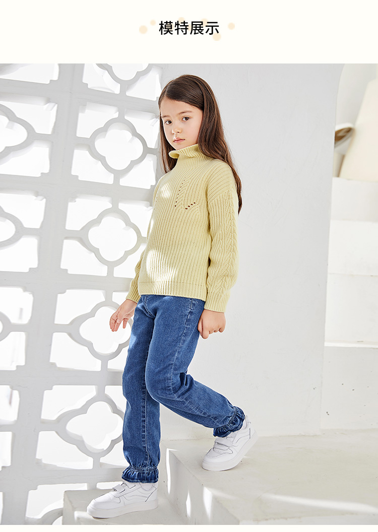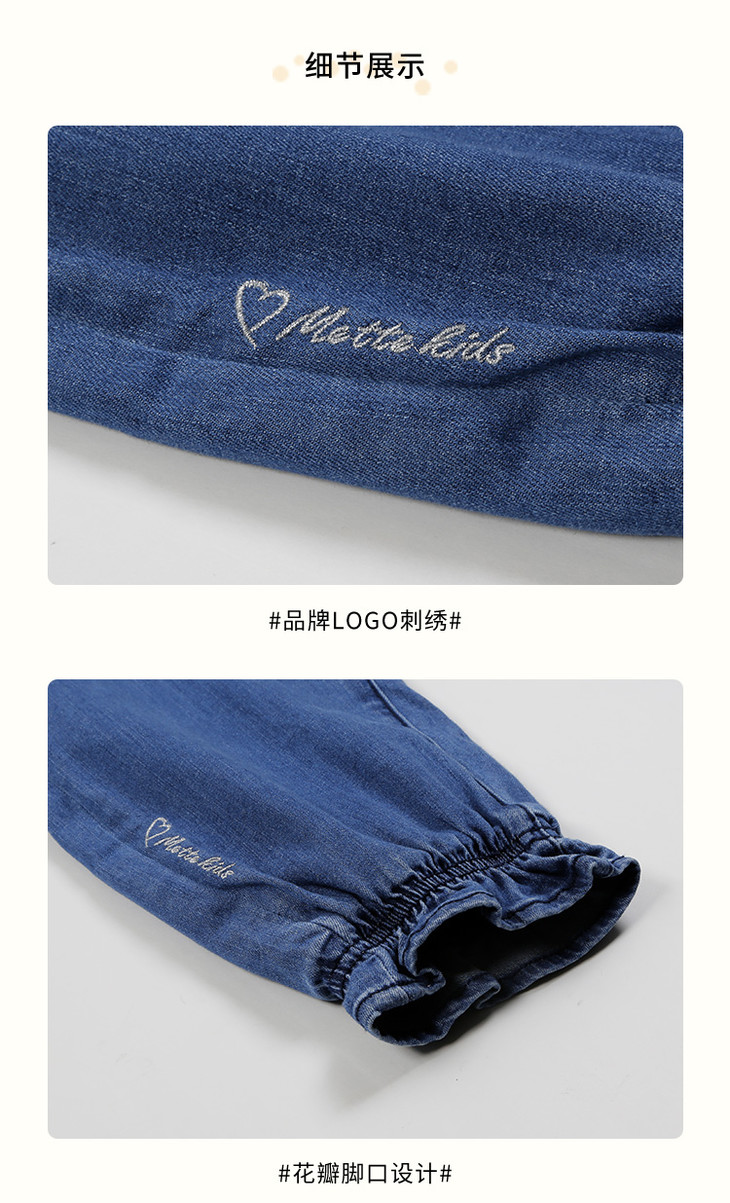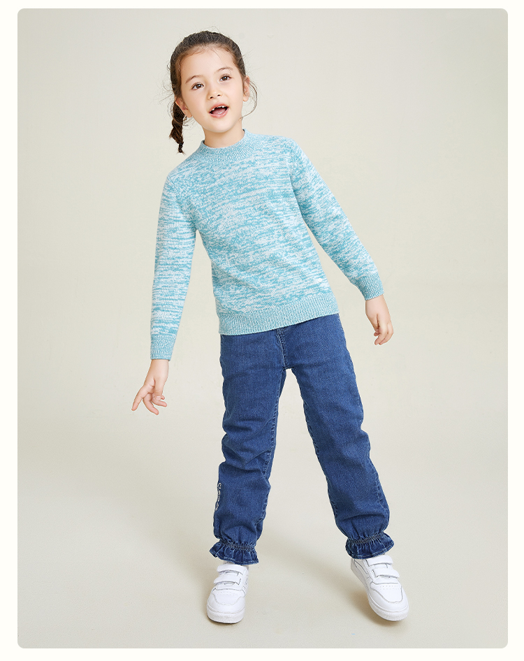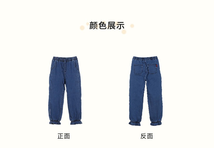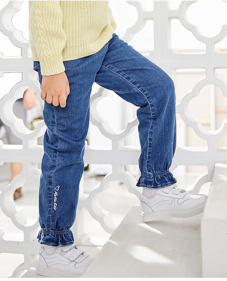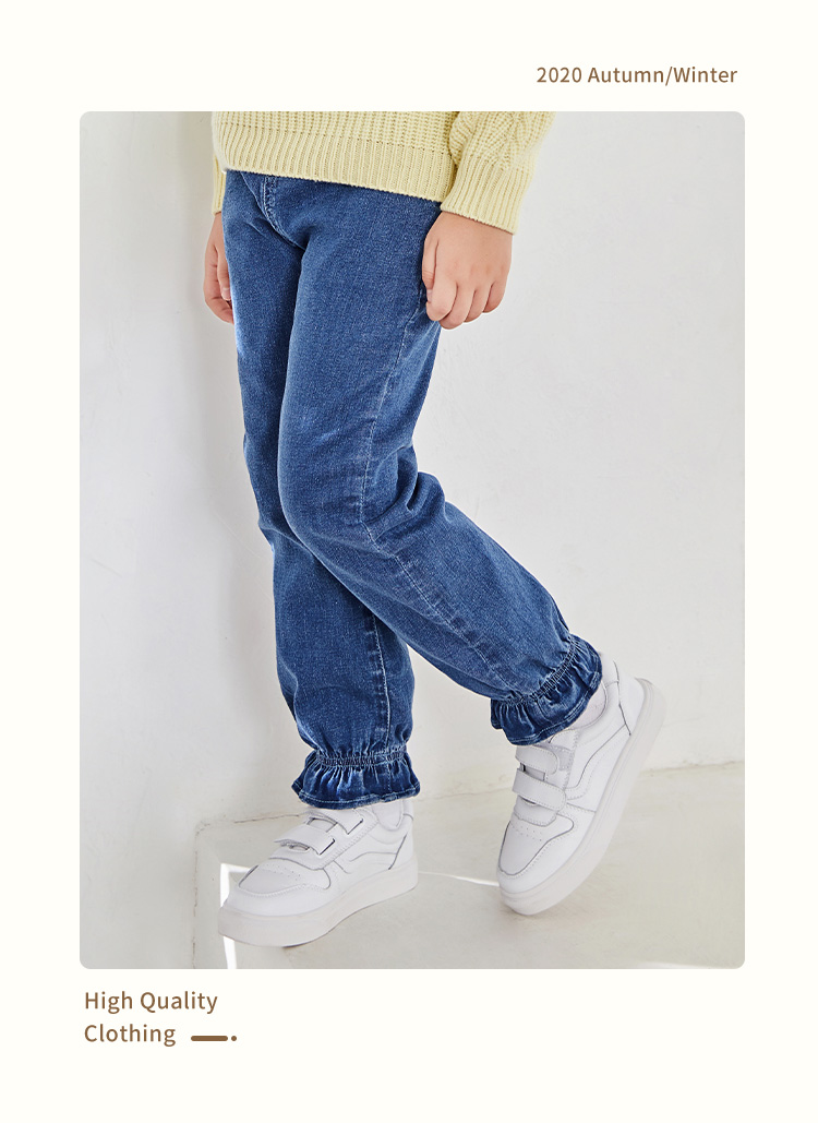 mette儿童裤子冬季新款中大童女加厚加绒牛仔裤宽松休闲水洗长裤