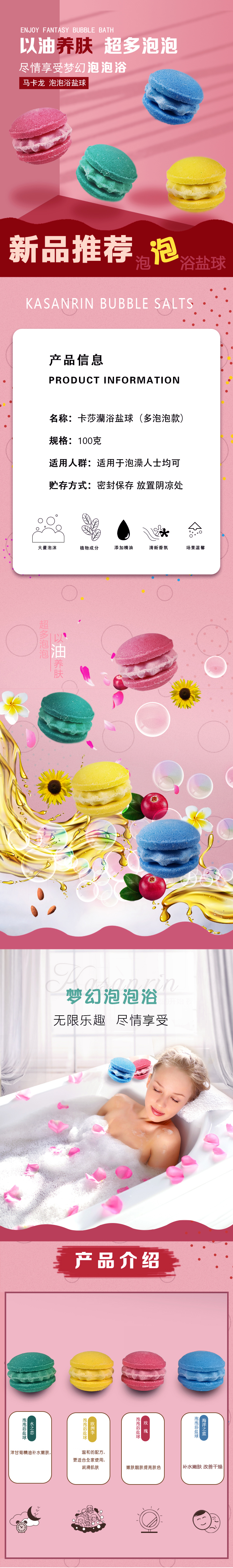 卡莎灡多泡泡浴盐球(马卡龙形状)