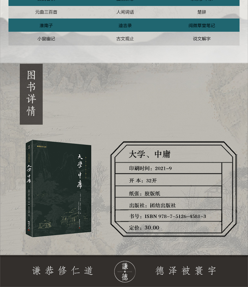 (仓发) 大学中庸 全本全注全译新版本谦德国学文库国学经典藏书/团结出版社/9787512645813