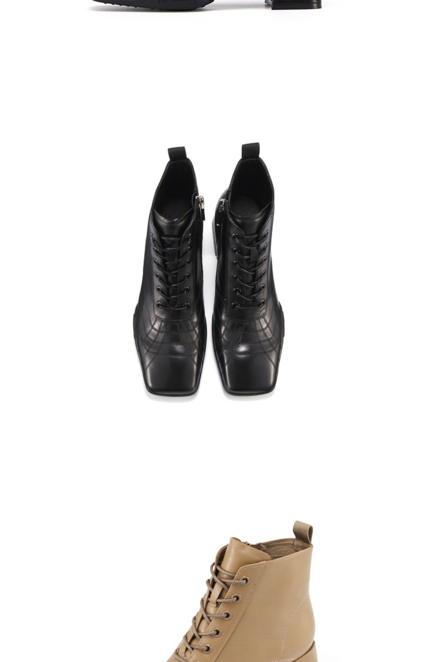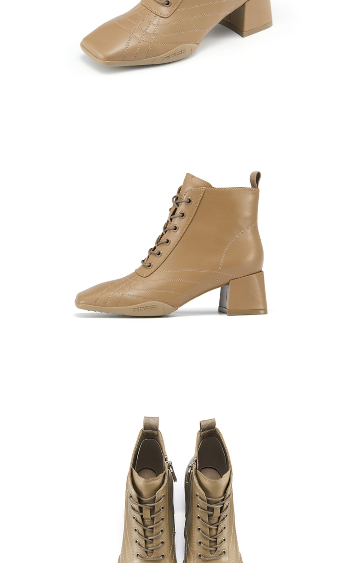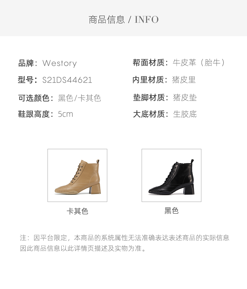westory2021秋季新款粗跟时装靴系带压纹方头短靴S21DS44621