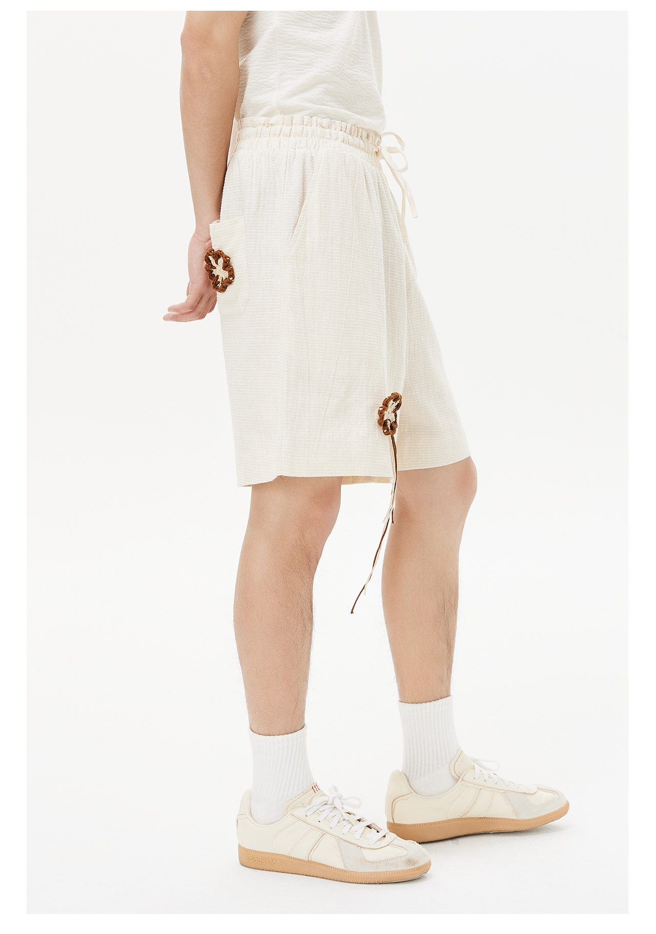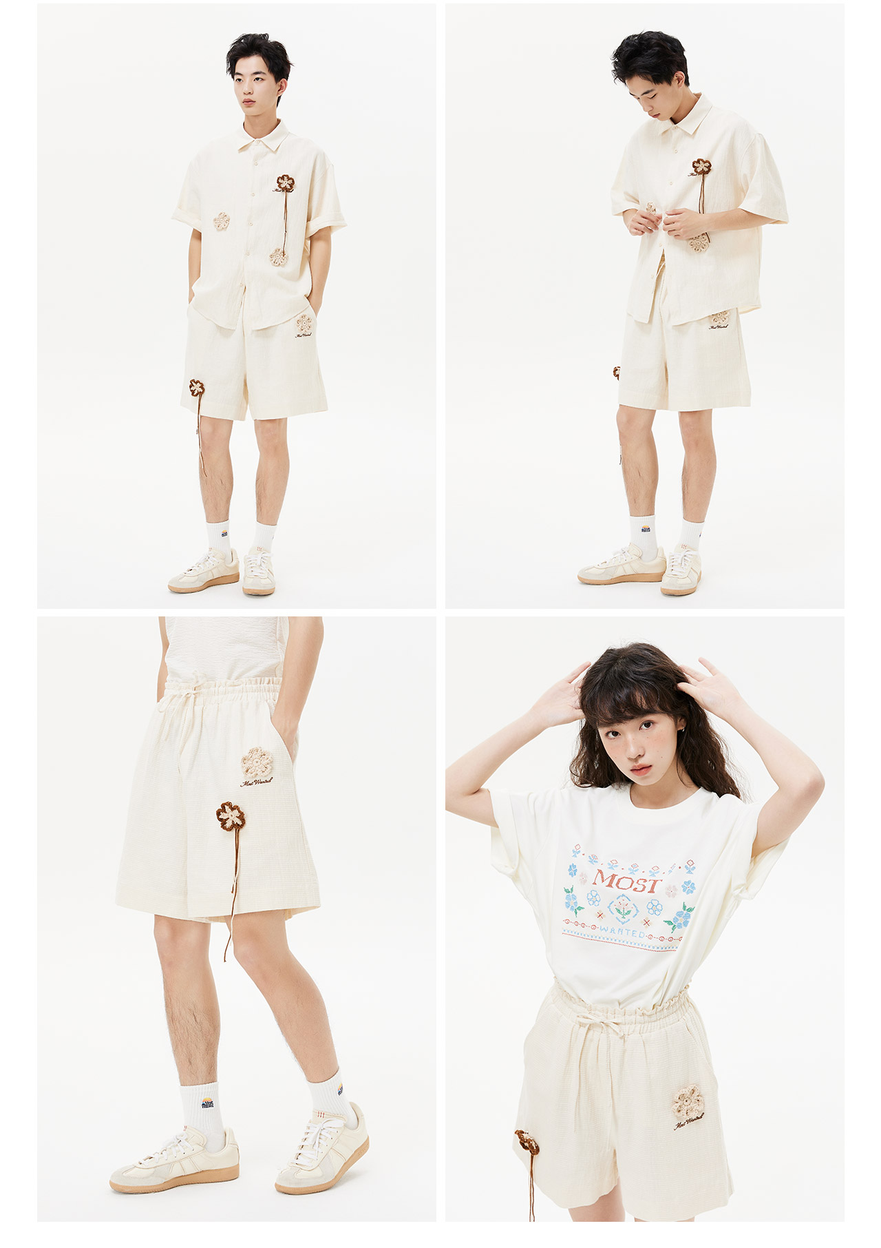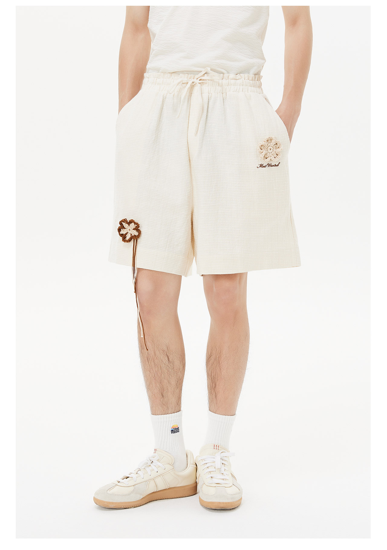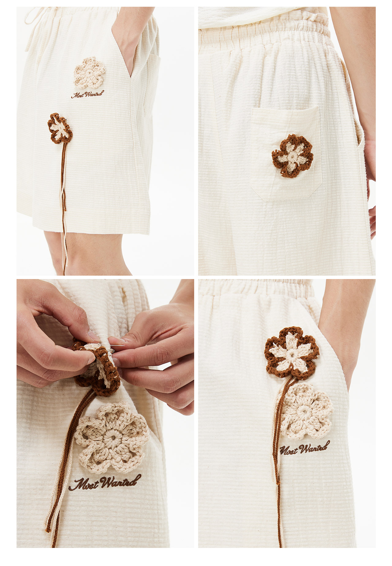 mostwantedlab彩虹/M2412189/泡泡皱钩针小花五分裤新款夏季宽松休闲短裤男