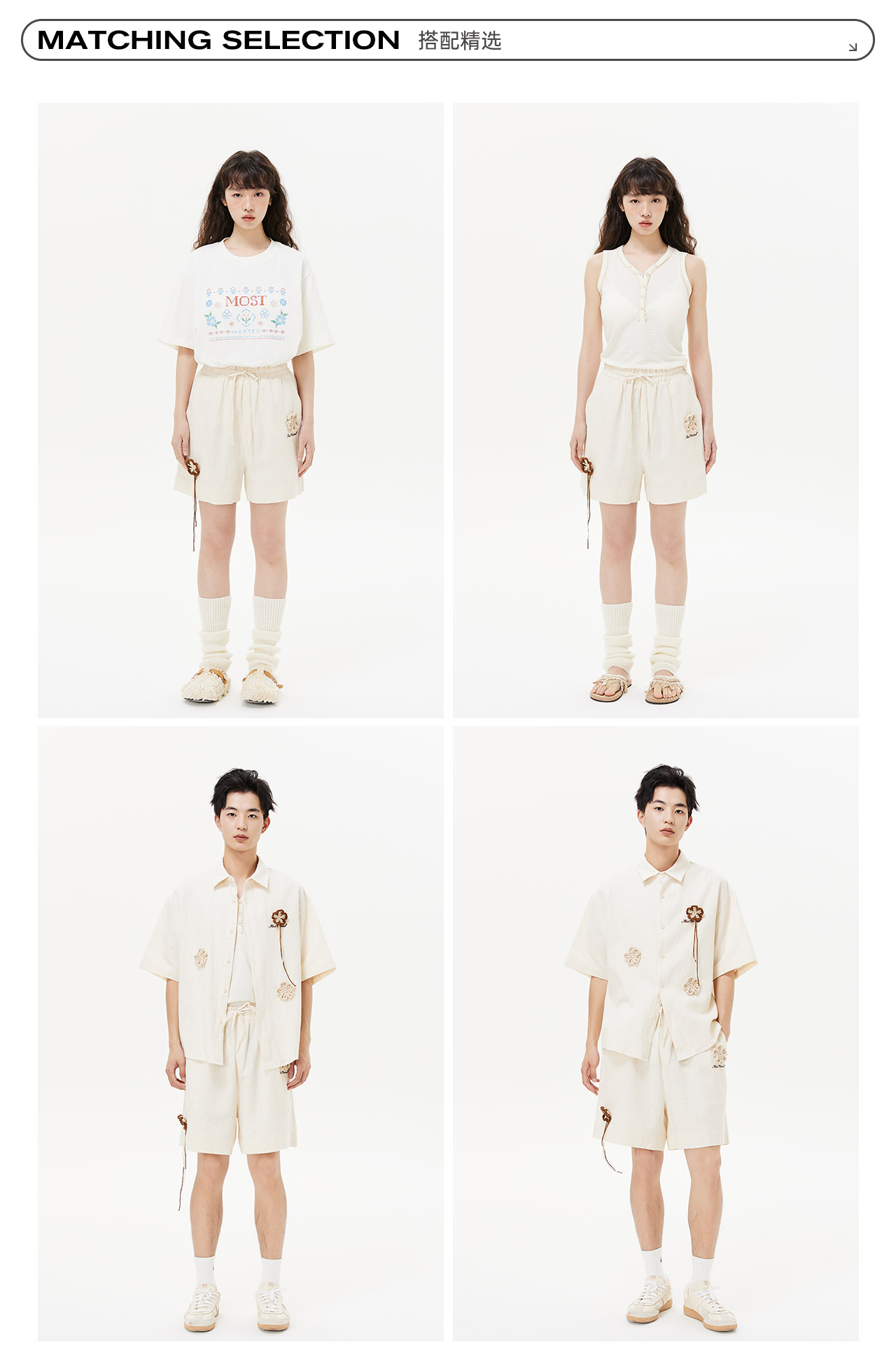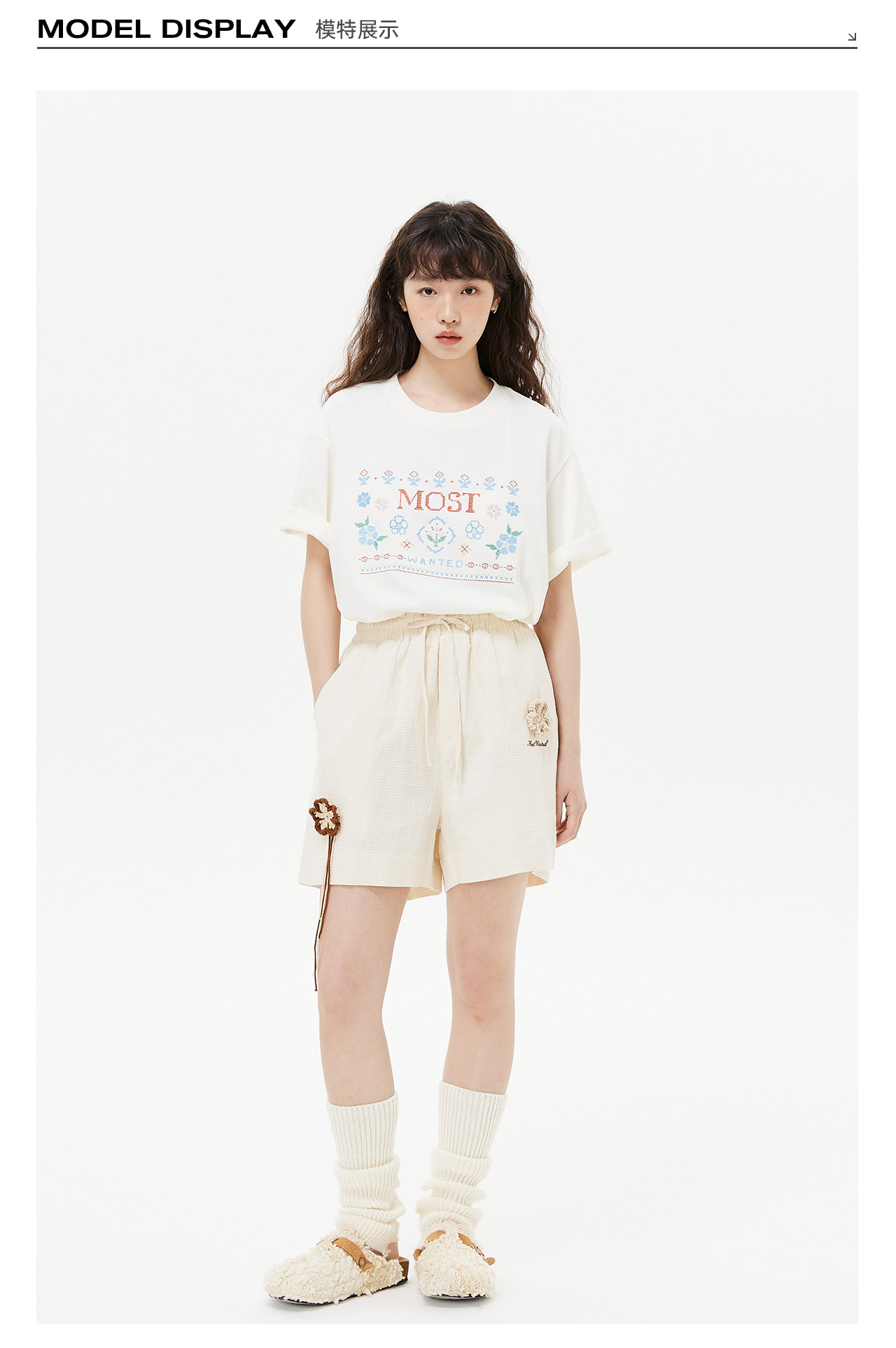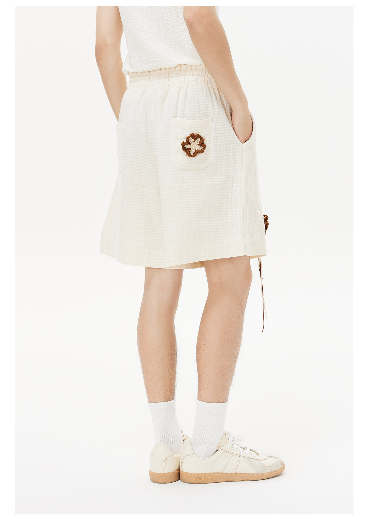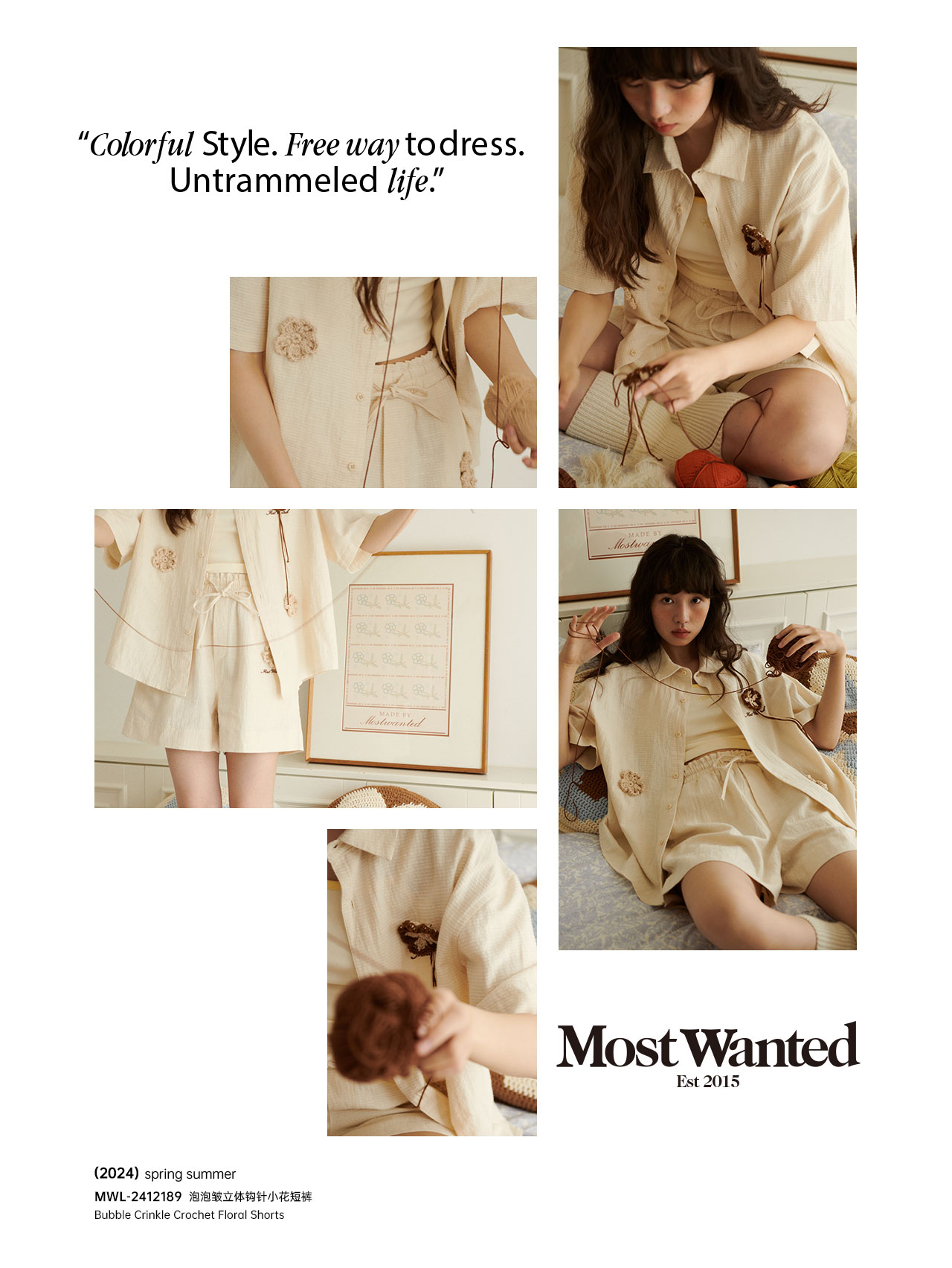 mostwantedlab彩虹/M2412189/泡泡皱钩针小花五分裤新款夏季宽松休闲短裤男