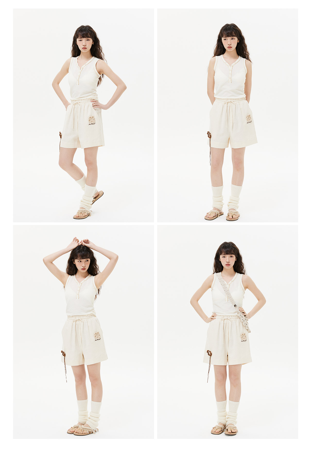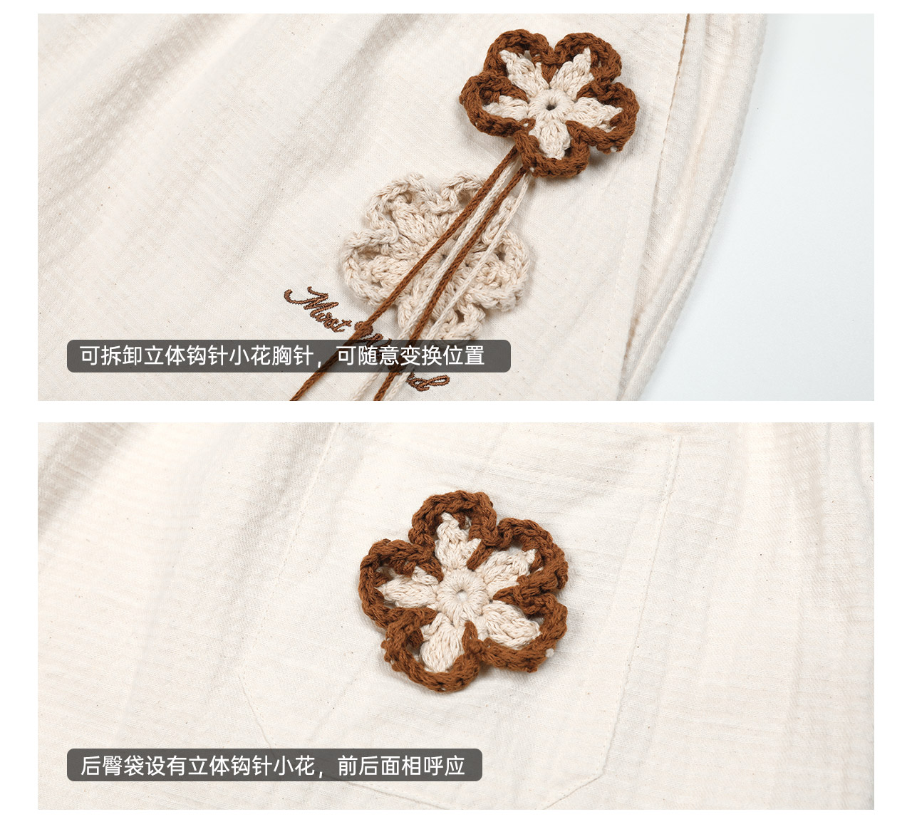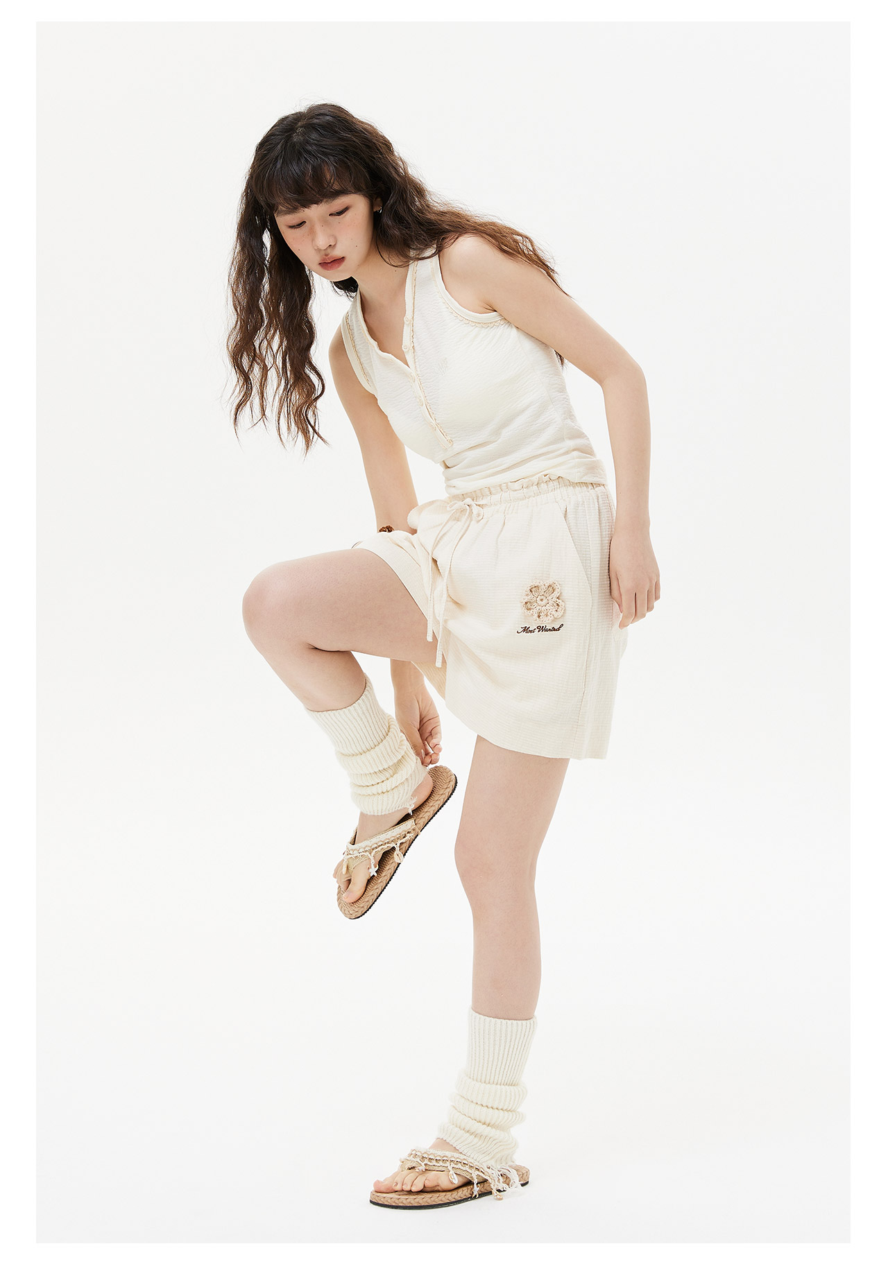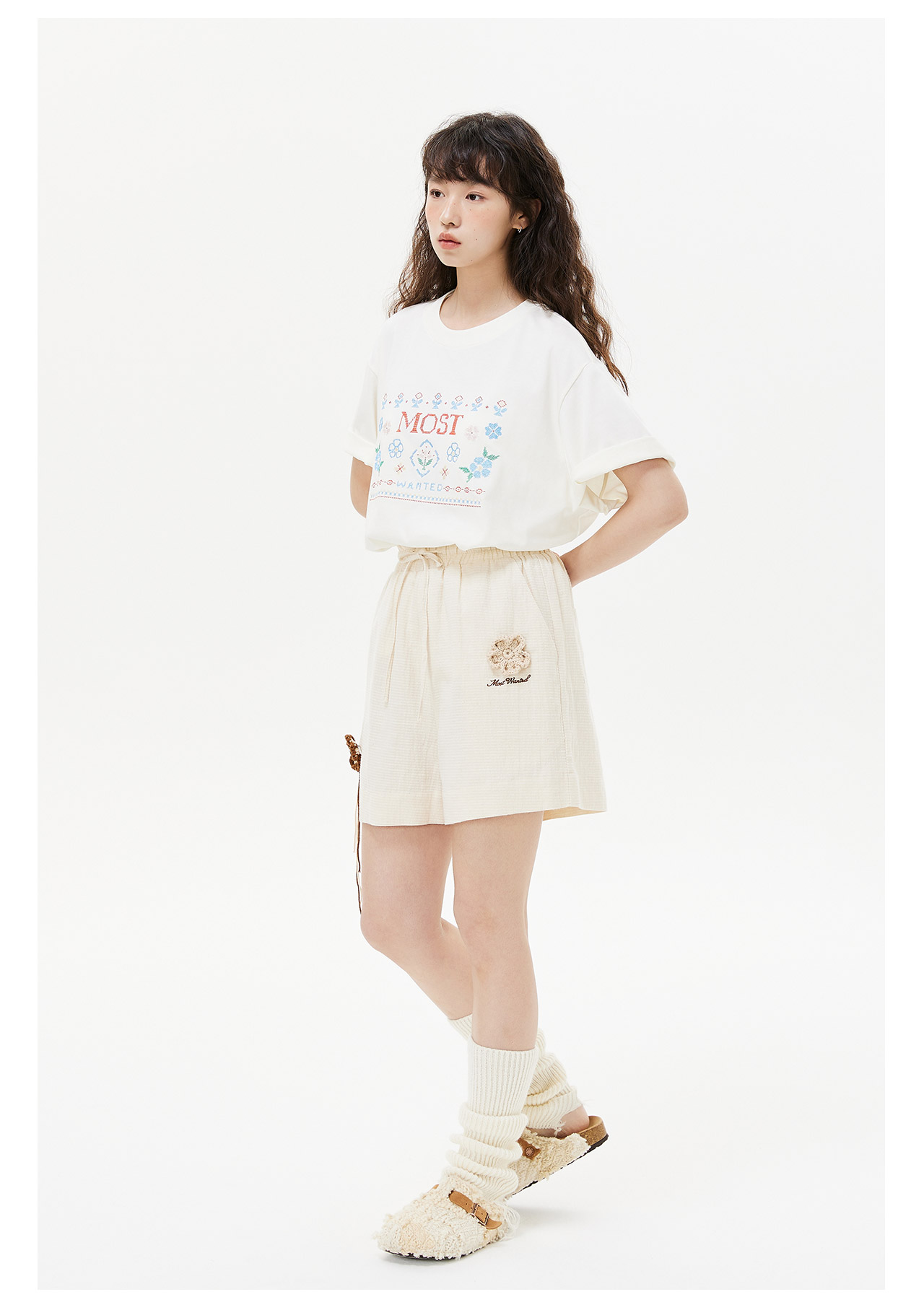 mostwantedlab彩虹/M2412189/泡泡皱钩针小花五分裤新款夏季宽松休闲短裤男