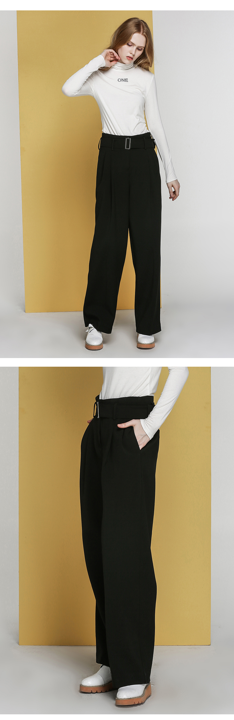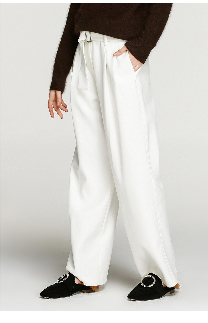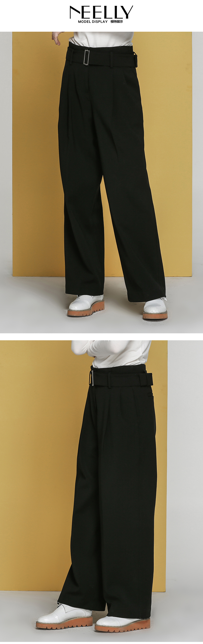 NEELLY纳俪冬装新款女纯色超宽松百搭显瘦腰带时尚长裤阔腿裤