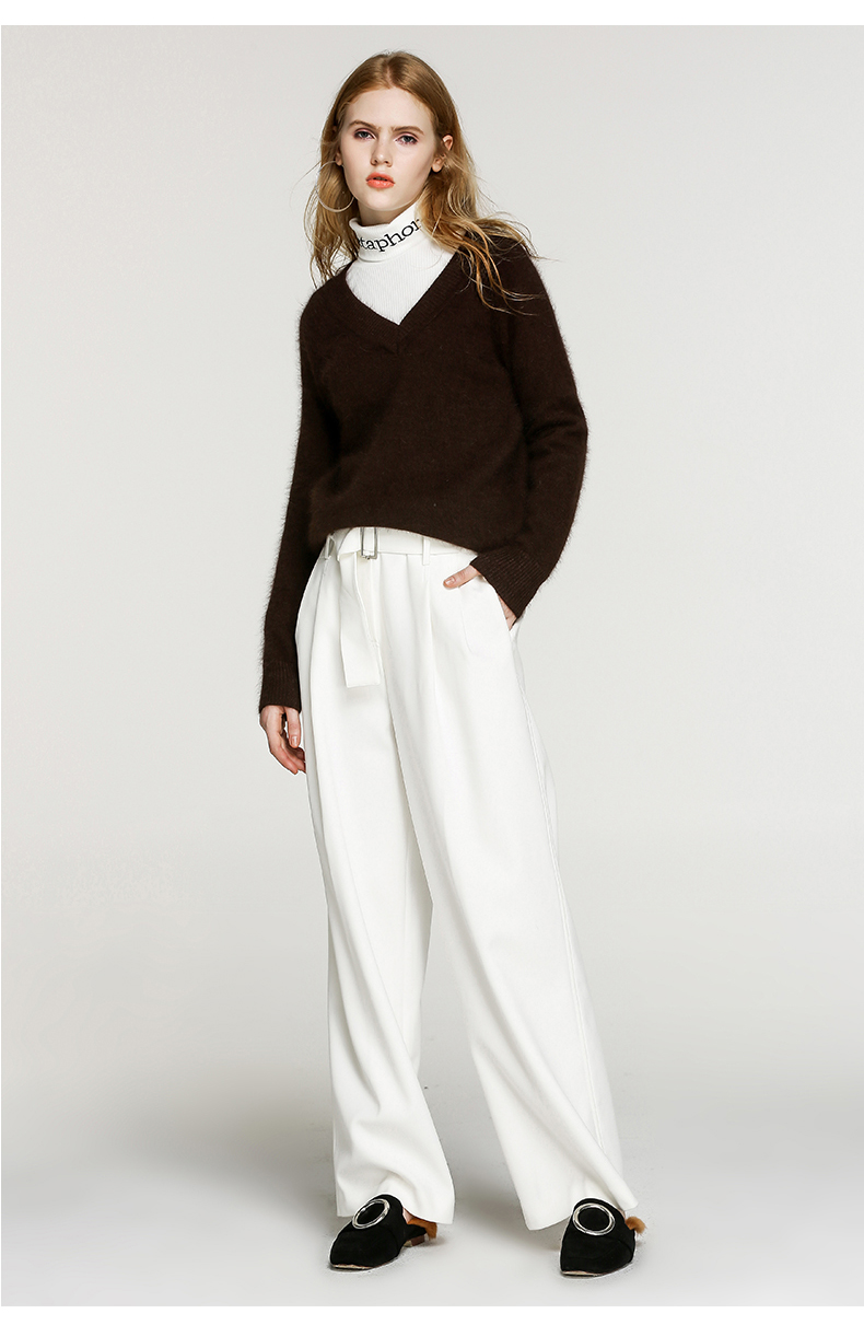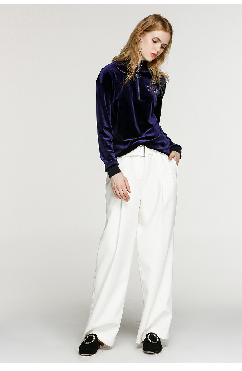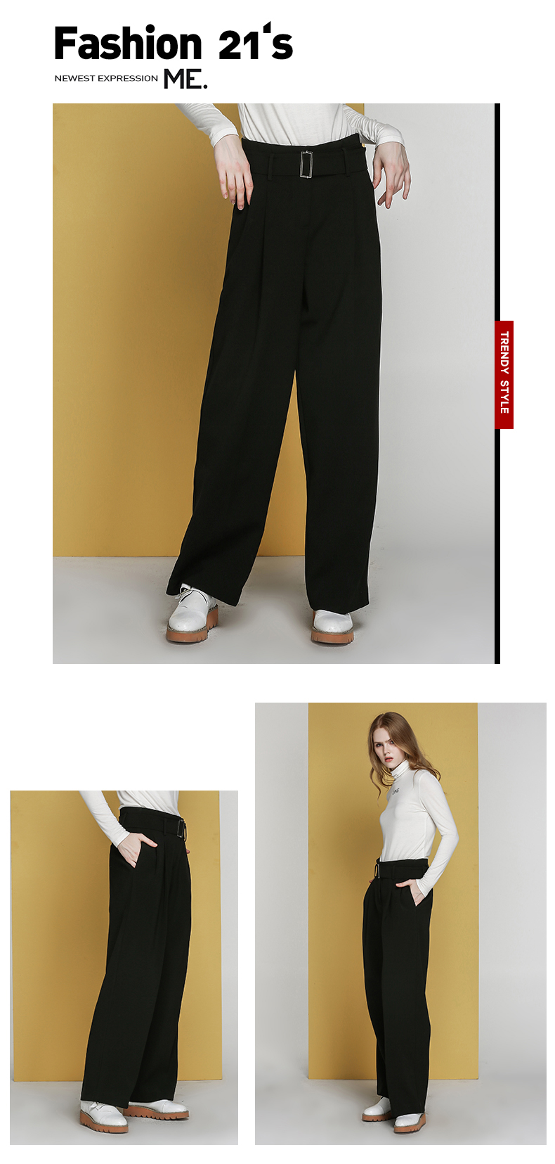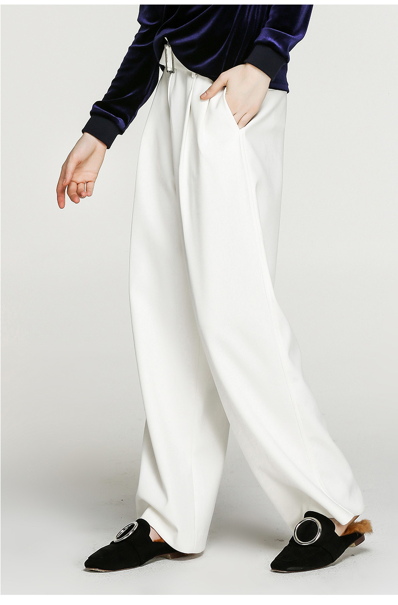 NEELLY纳俪冬装新款女纯色超宽松百搭显瘦腰带时尚长裤阔腿裤
