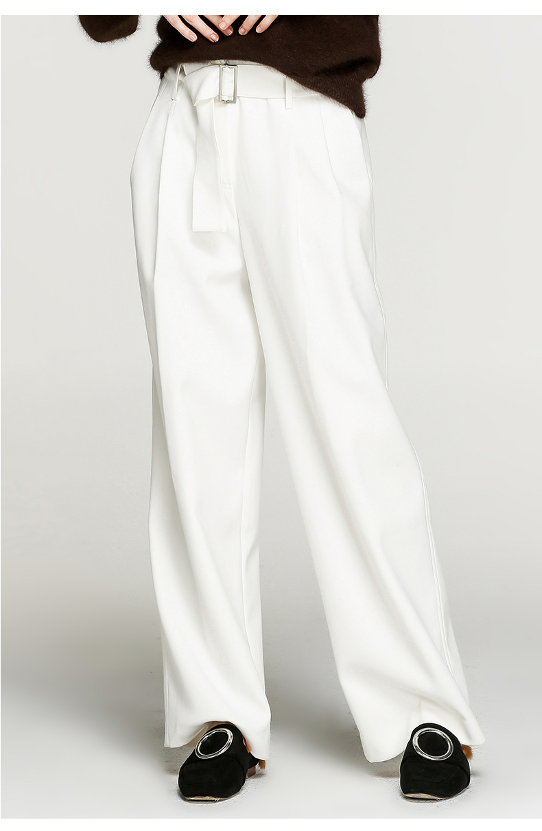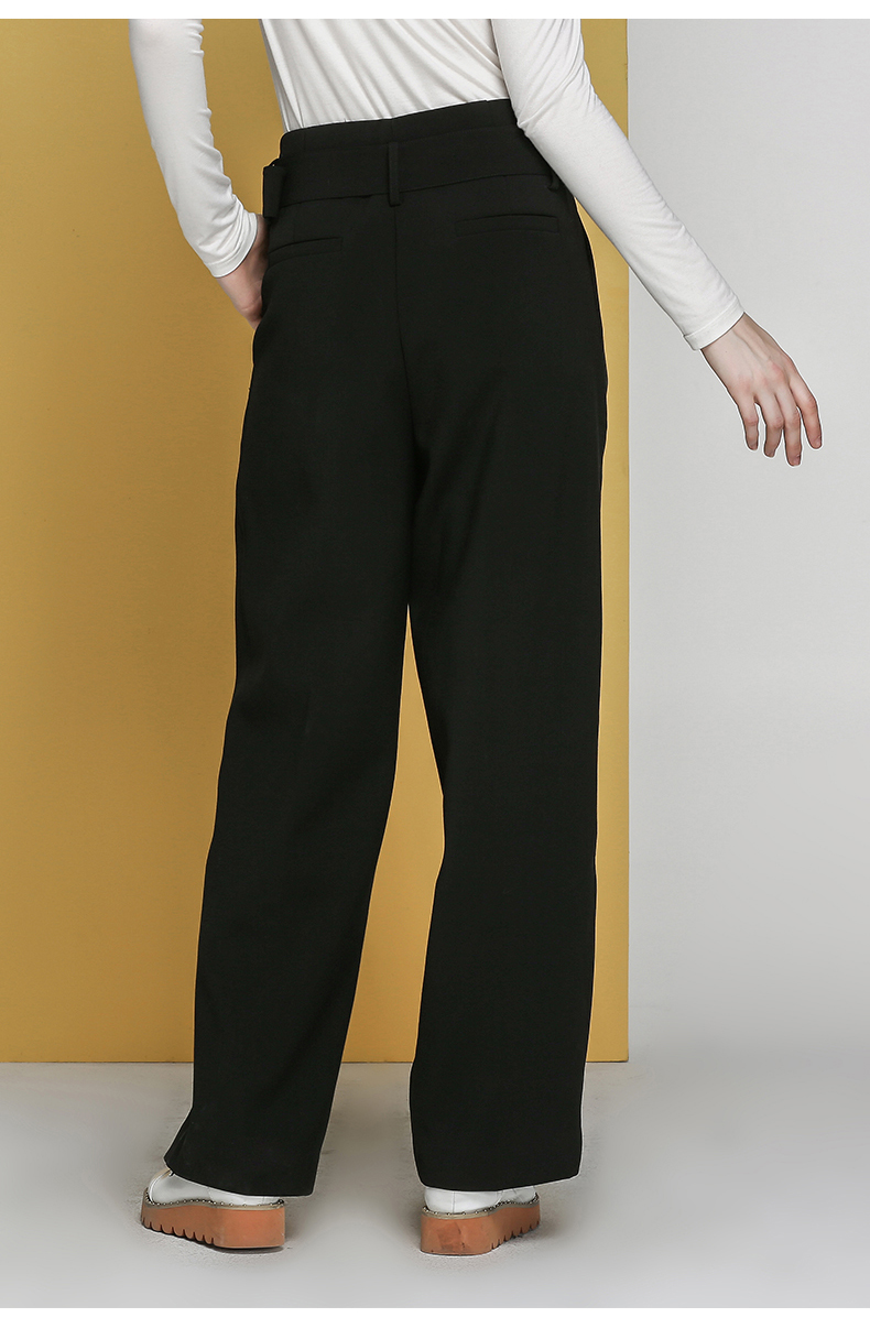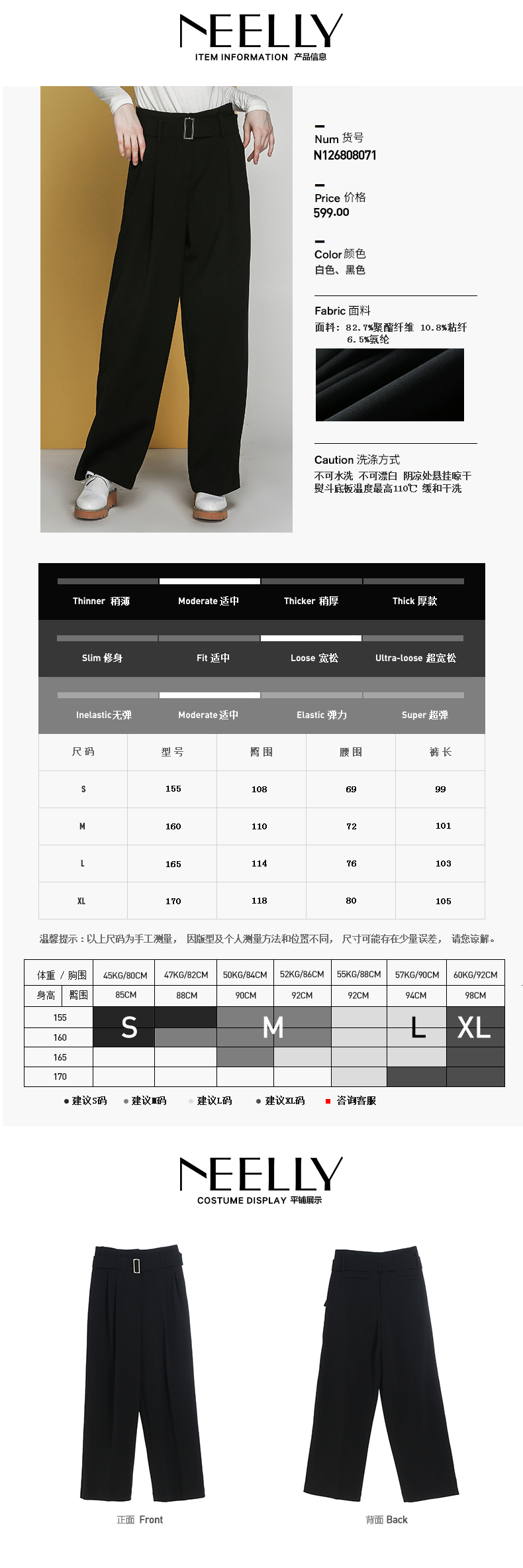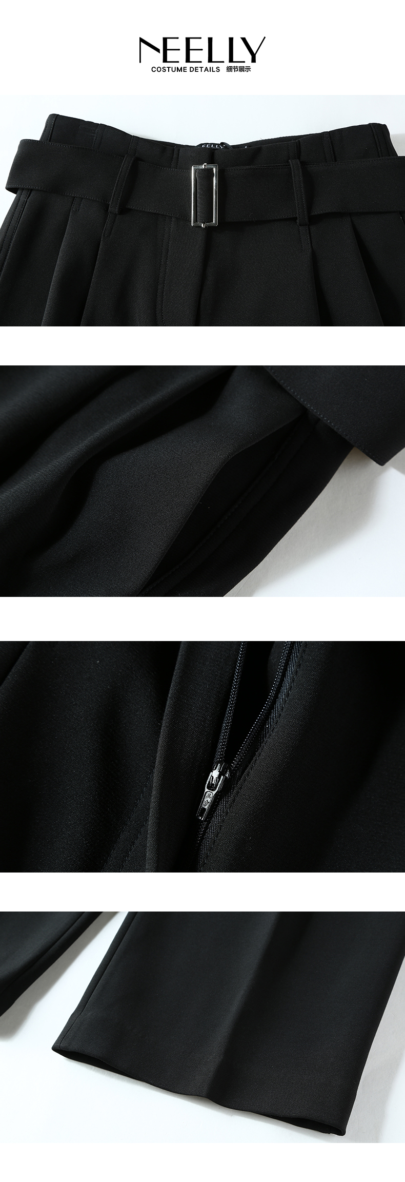 NEELLY纳俪商场同款西装休闲裤女立体打褶收腰系带阔腿直筒裤百搭N22052H01174