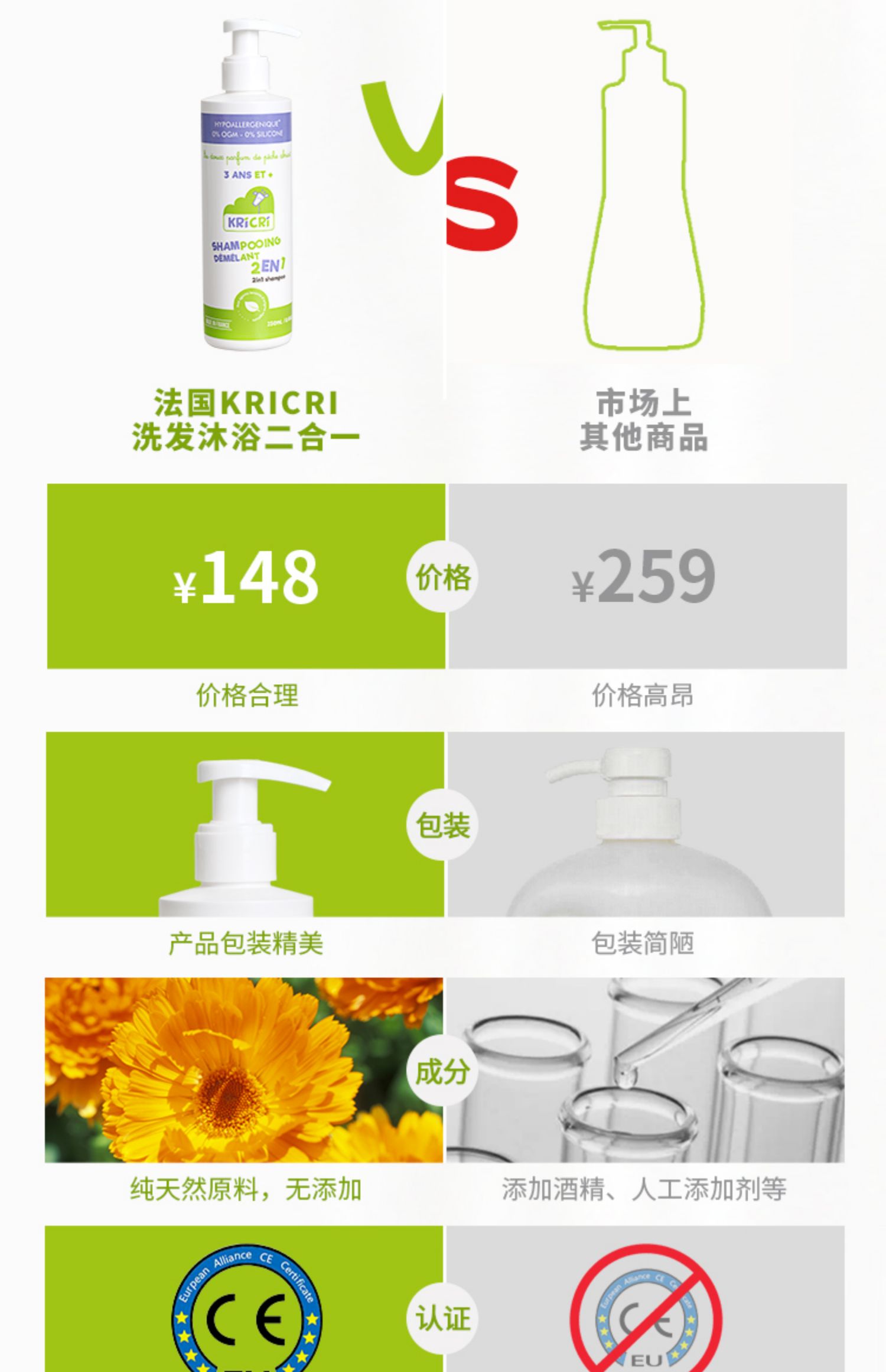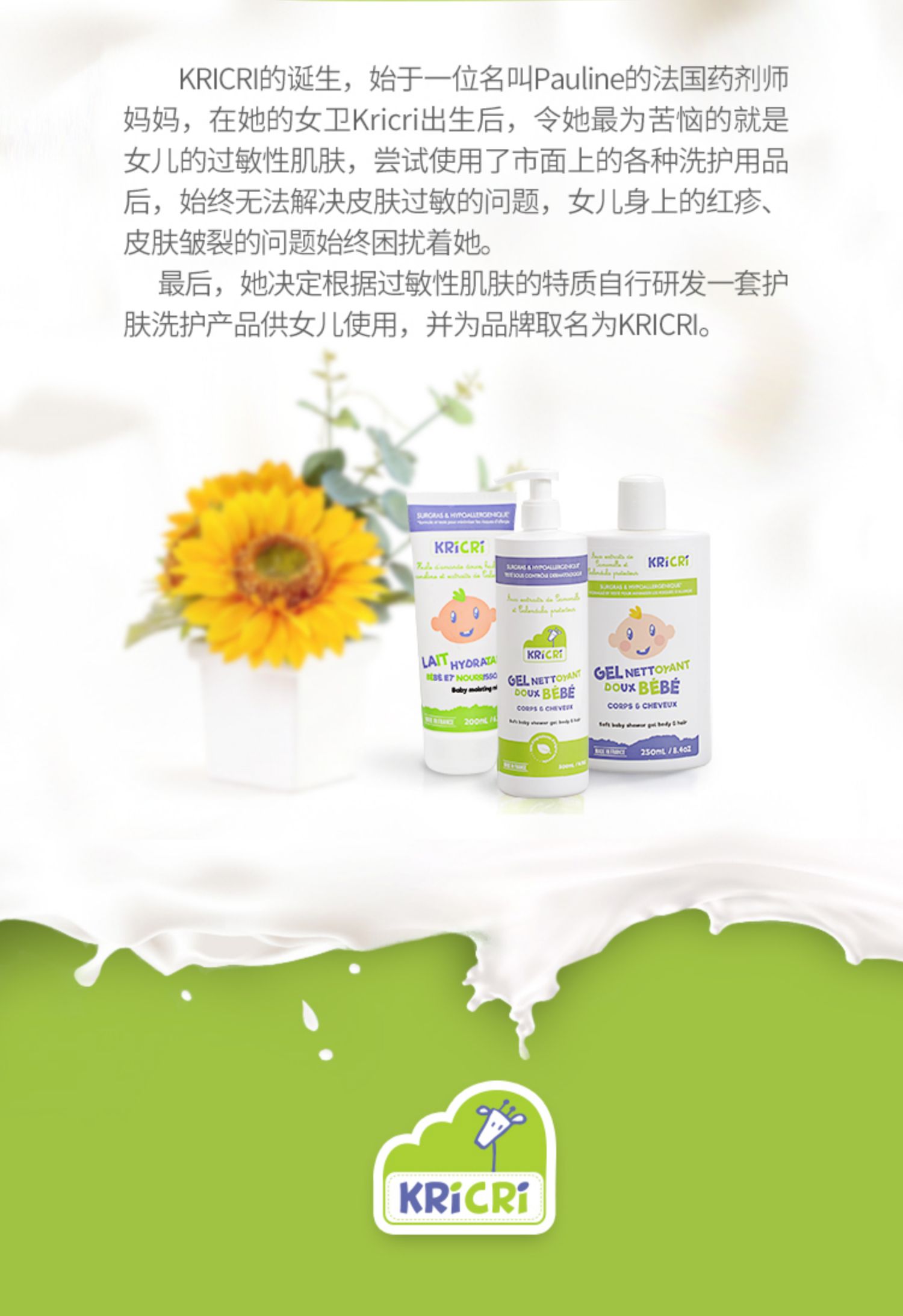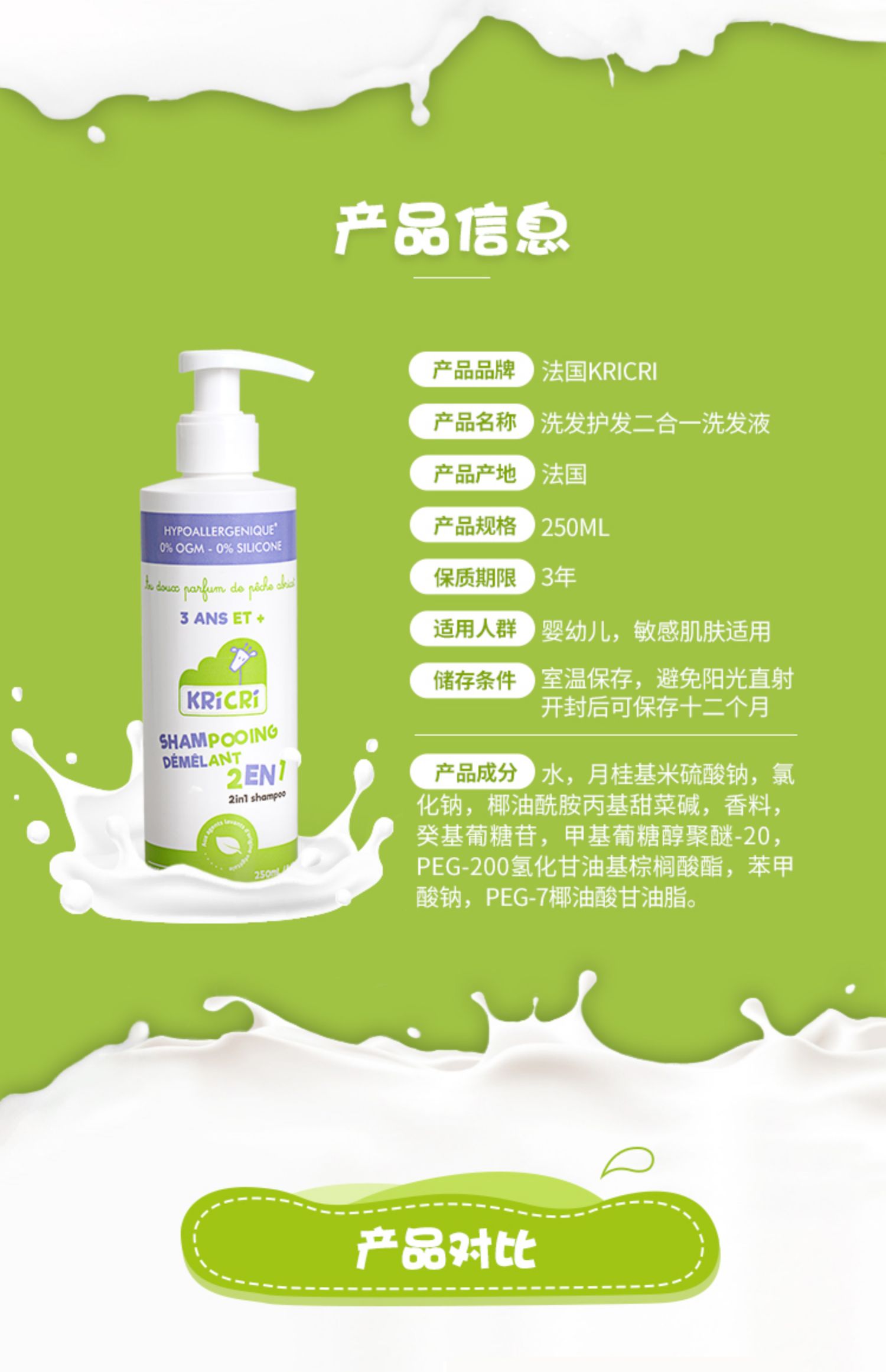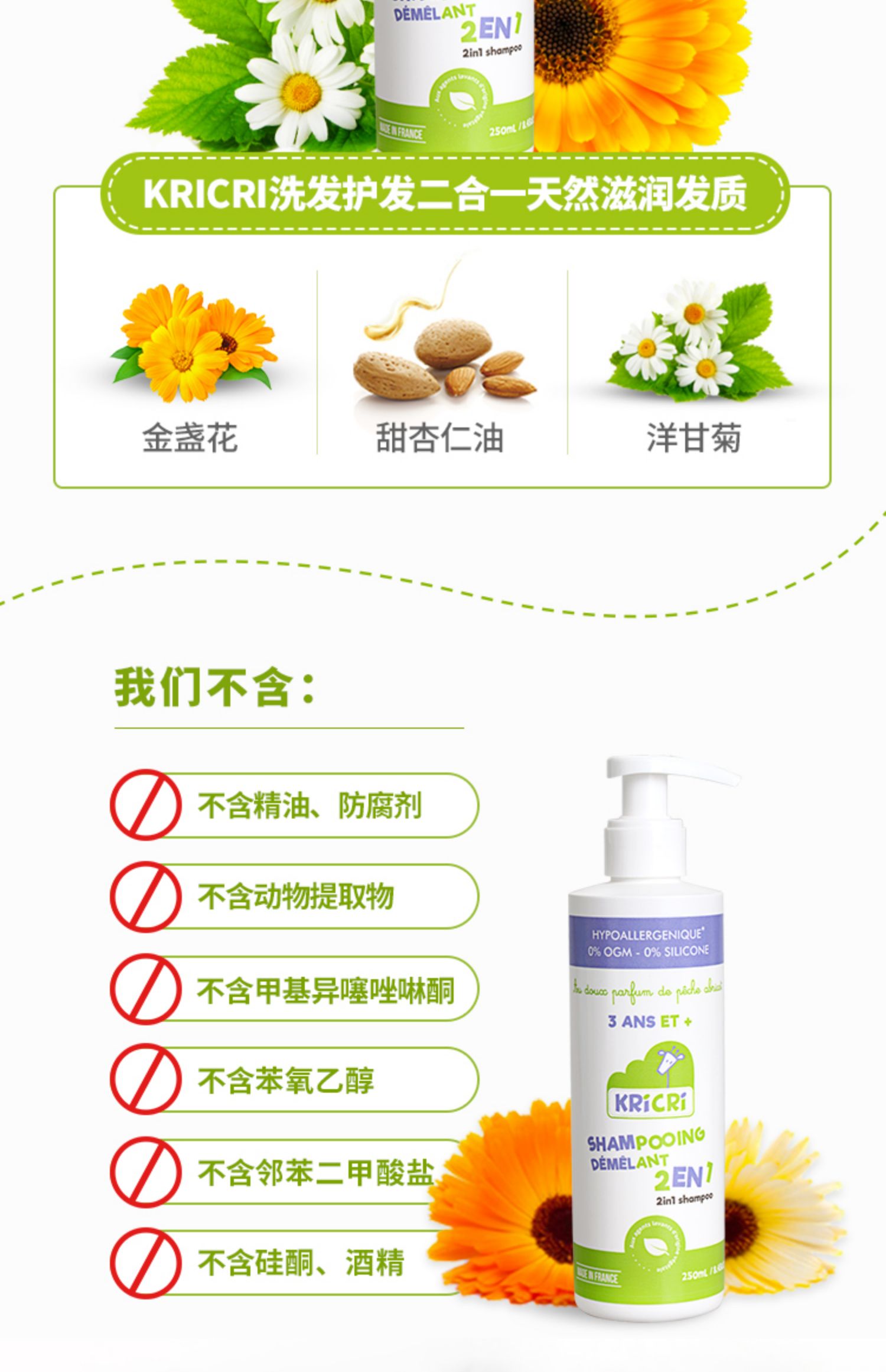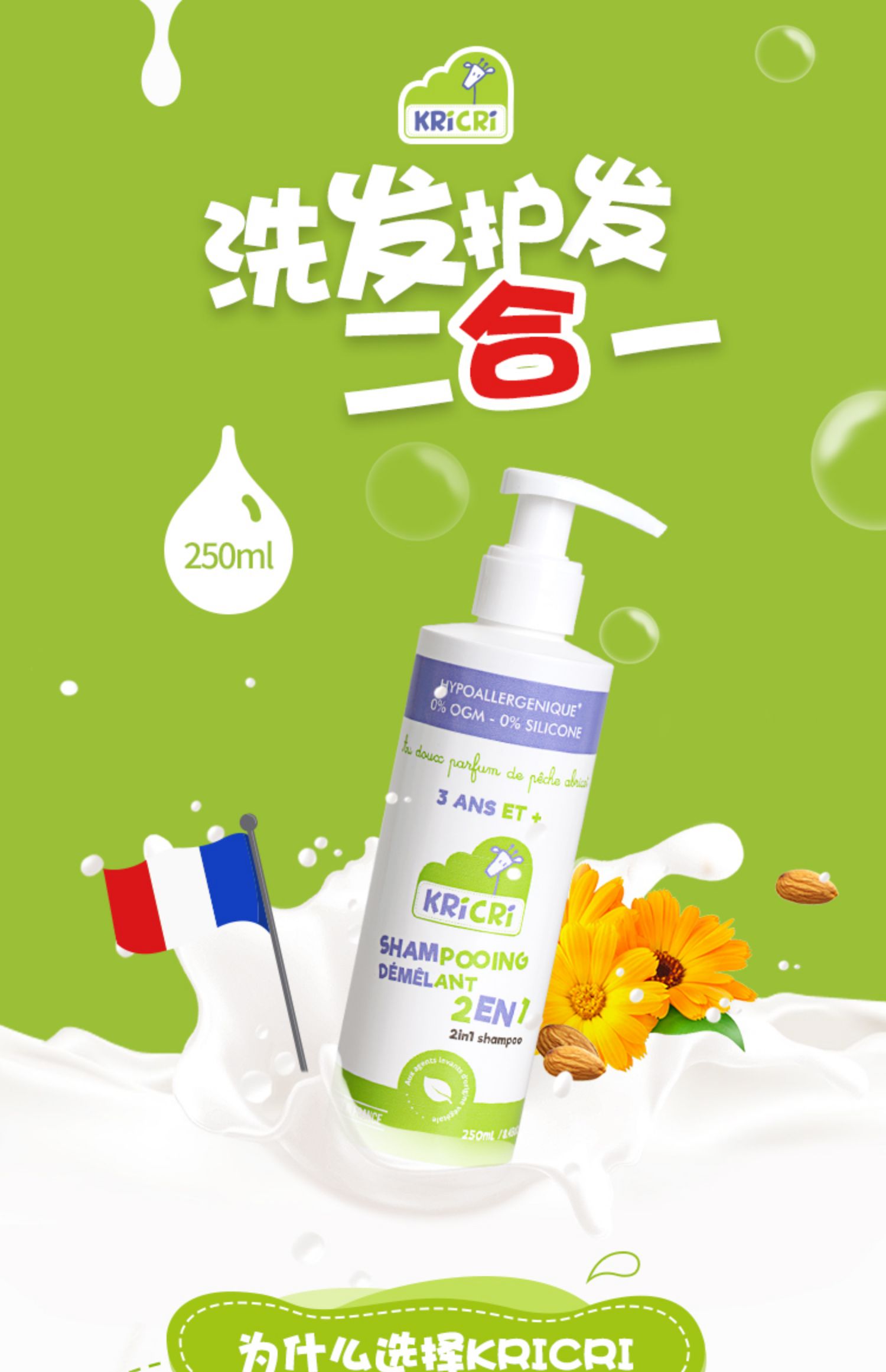 法国原装进口 KRICRI宝宝洗发护发二合一250ml 宝宝洗护用品【奇利奇利】