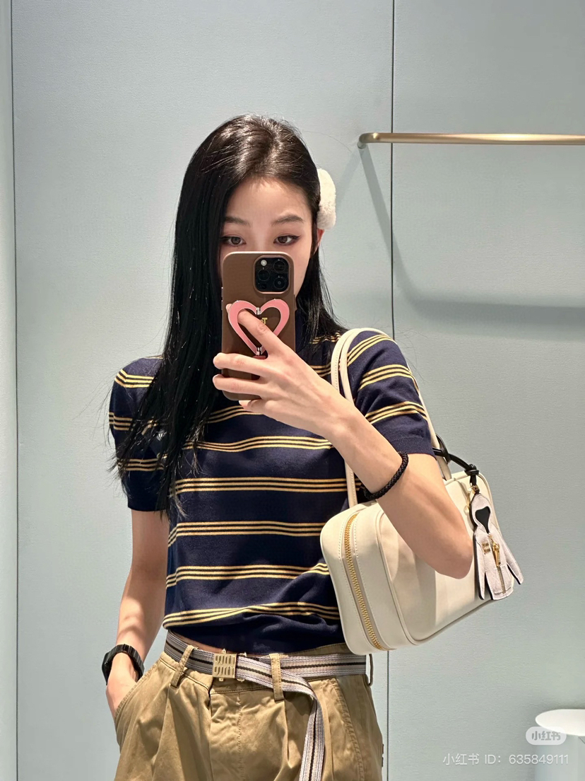68-4 独家圆正 miu夏季的羊绒 温润舒爽 条纹针织polo衫 我穿42合身44宽松