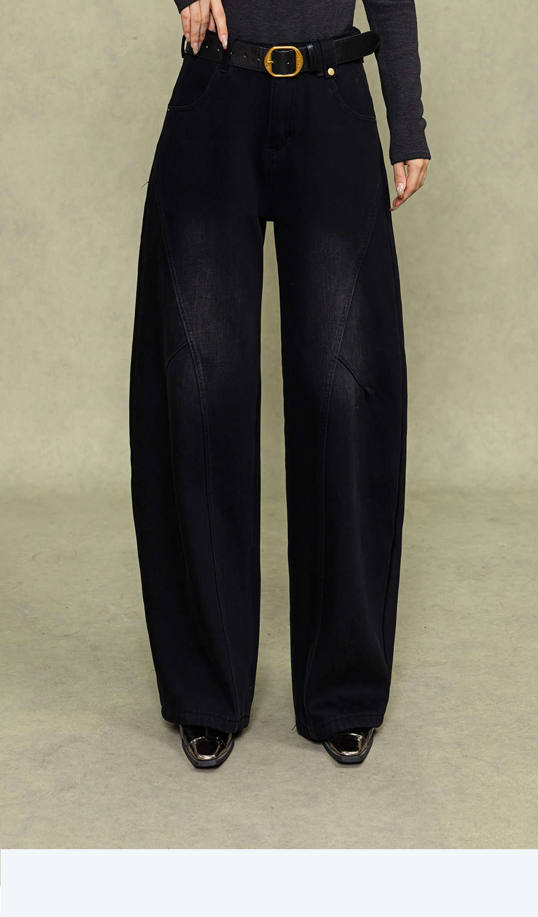 冬上新高腰阔腿垂感拖地显瘦复古风牛仔裤裤3254059 商品图4