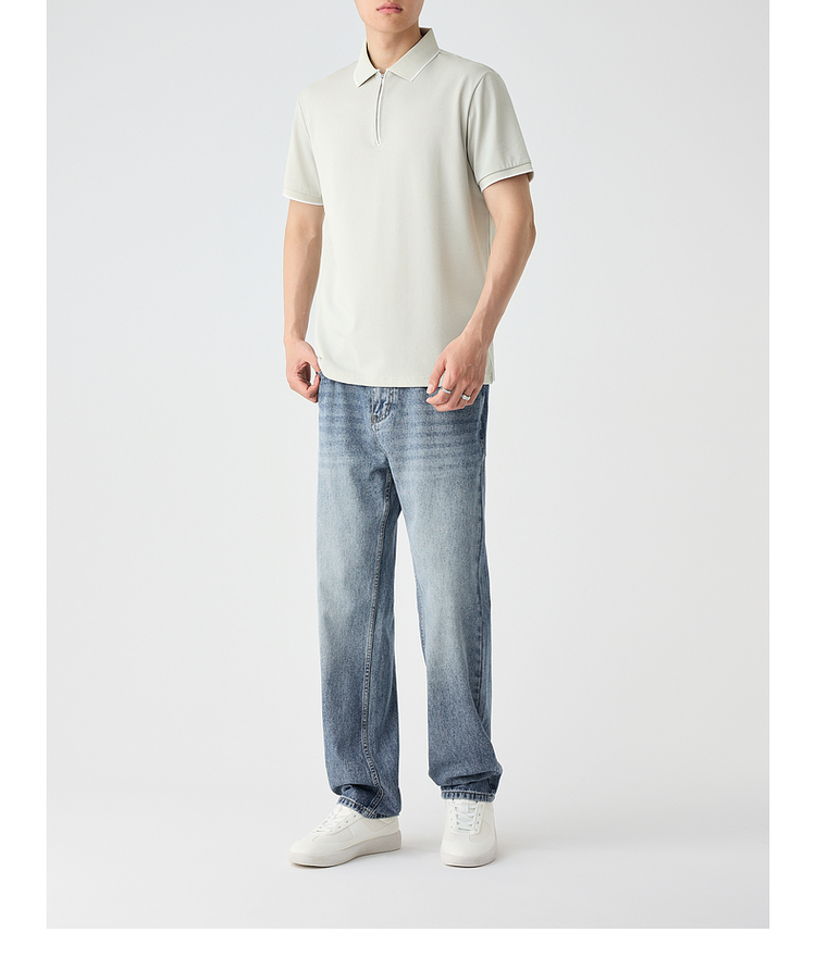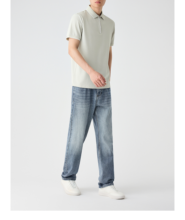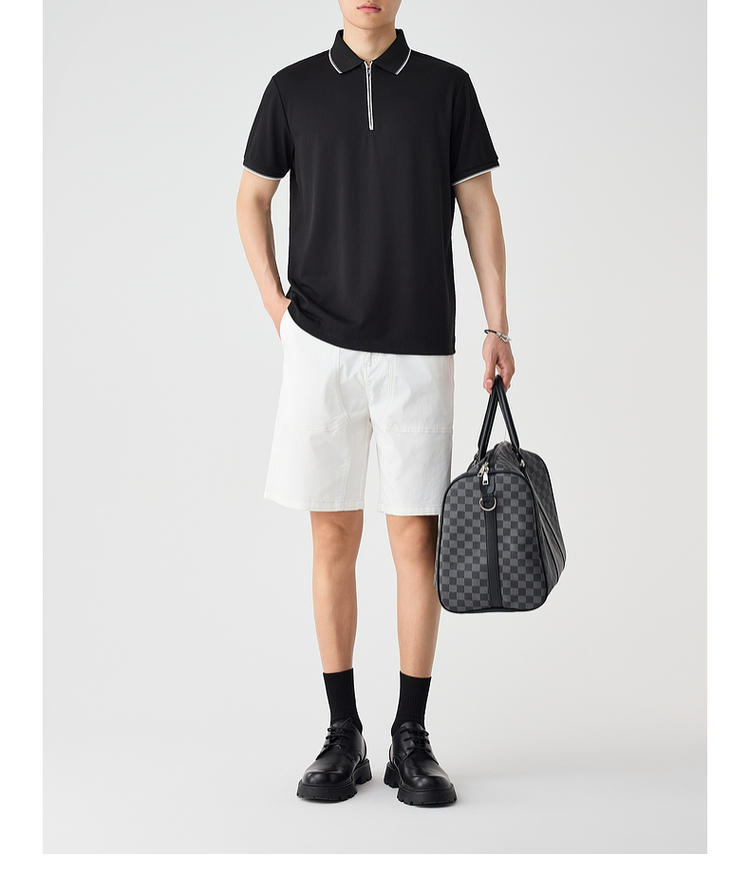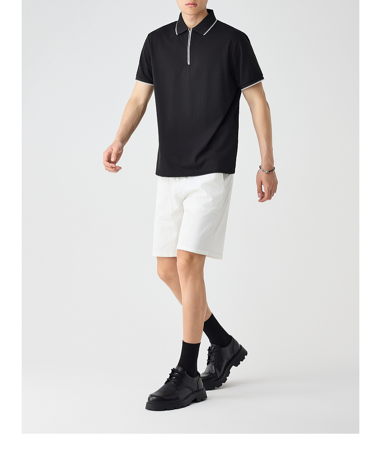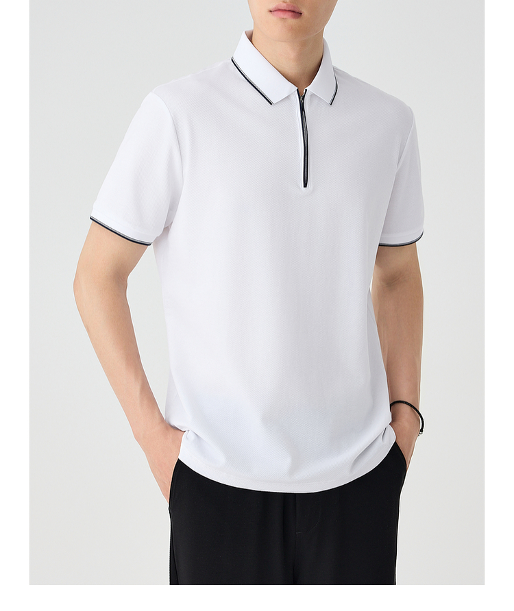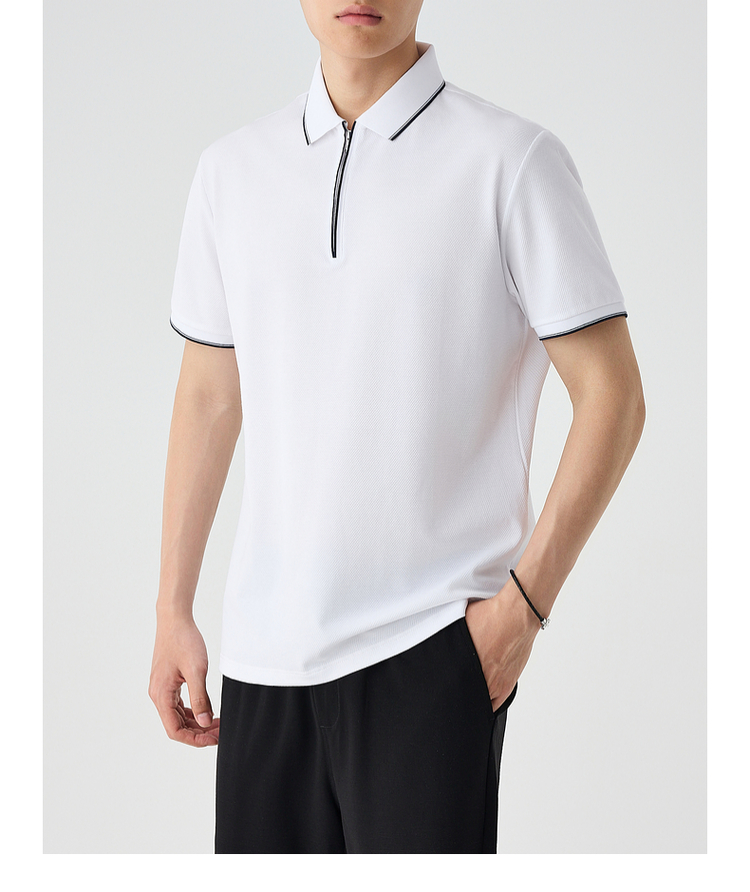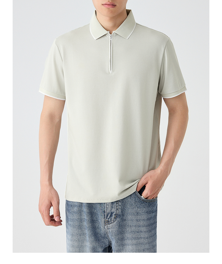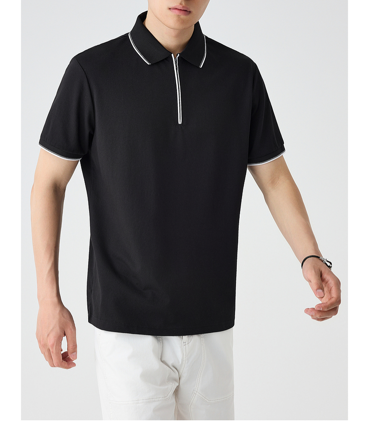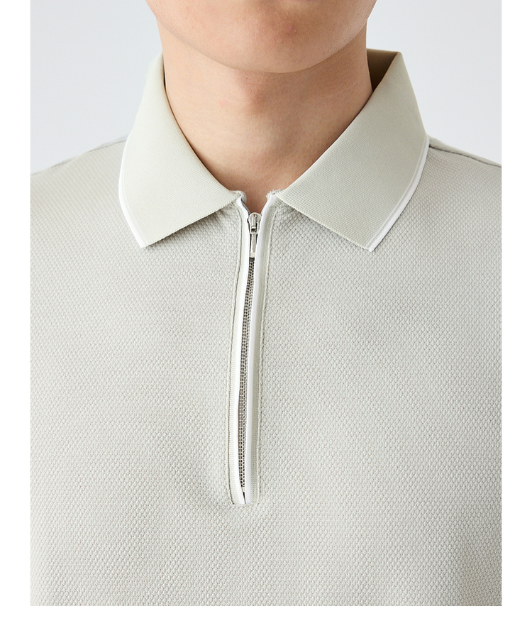 墨麦客菠萝纹肌理半开拉链男士凉感短袖polo衫2025夏季新款t恤男