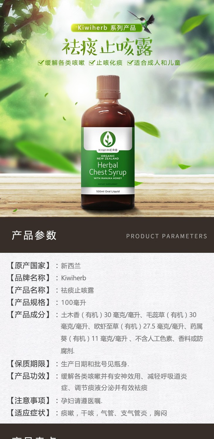 【保税仓】Kiwiherb成人麦卢卡维C糖浆100m 商品缩略图0