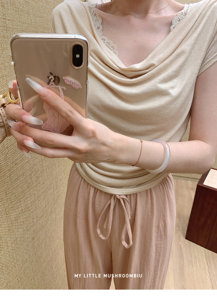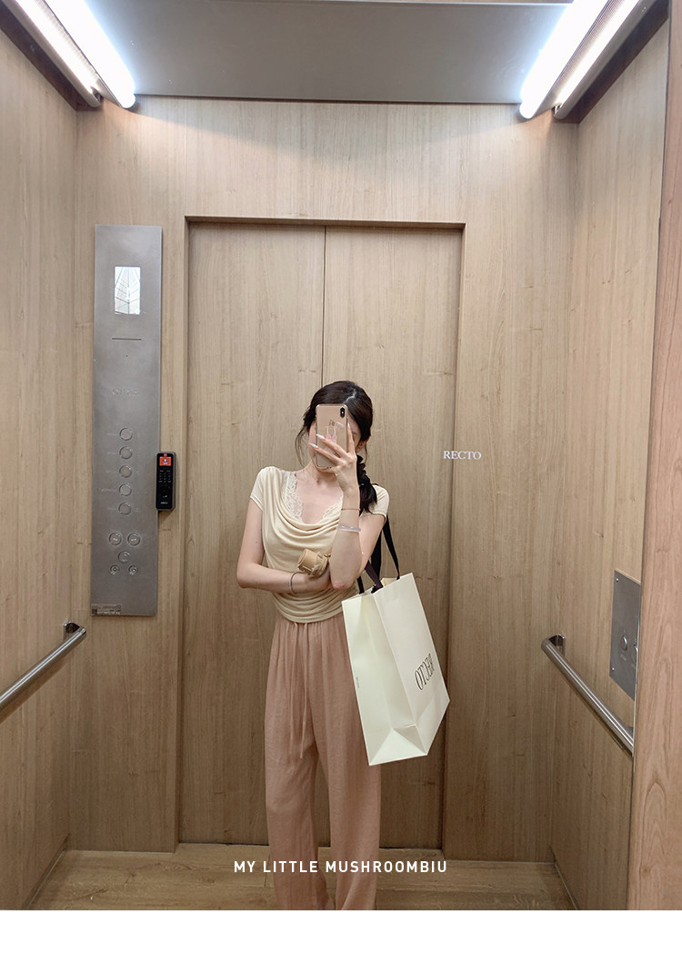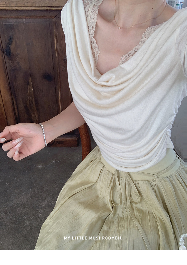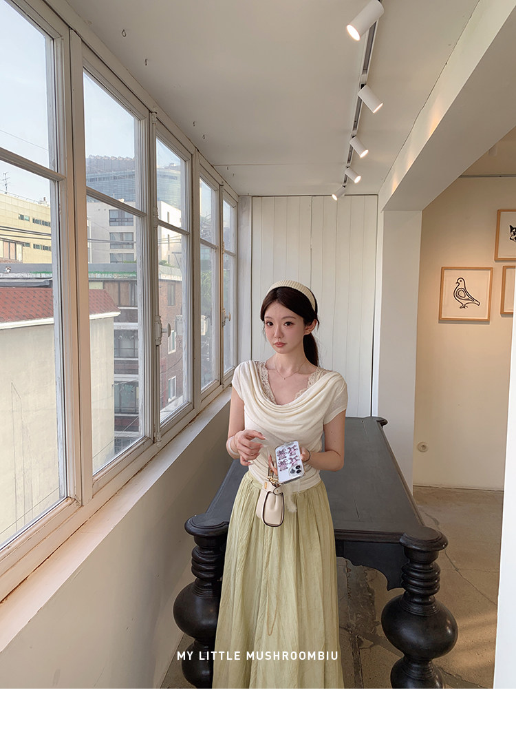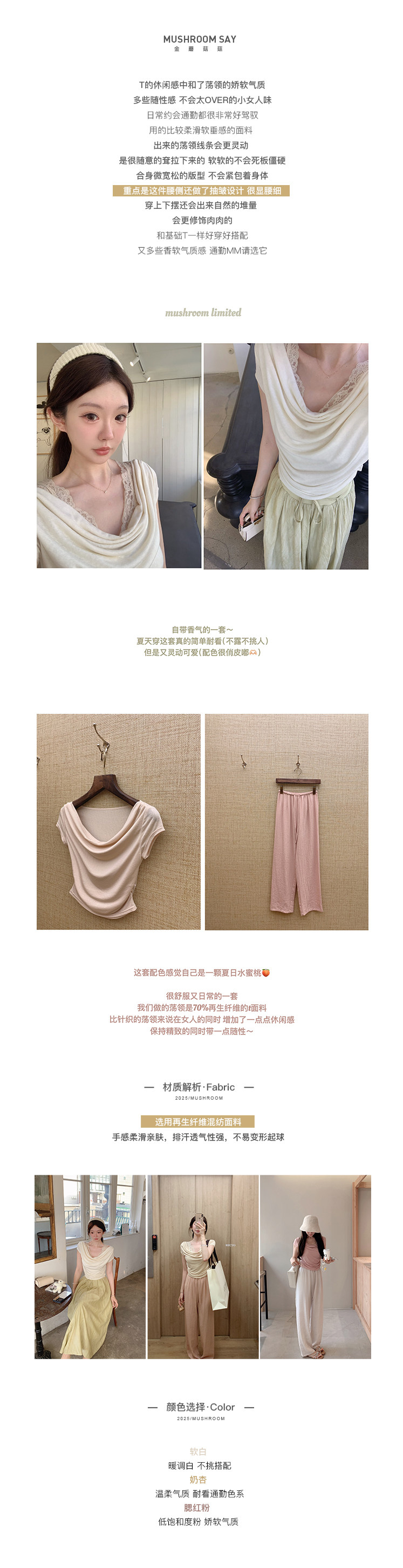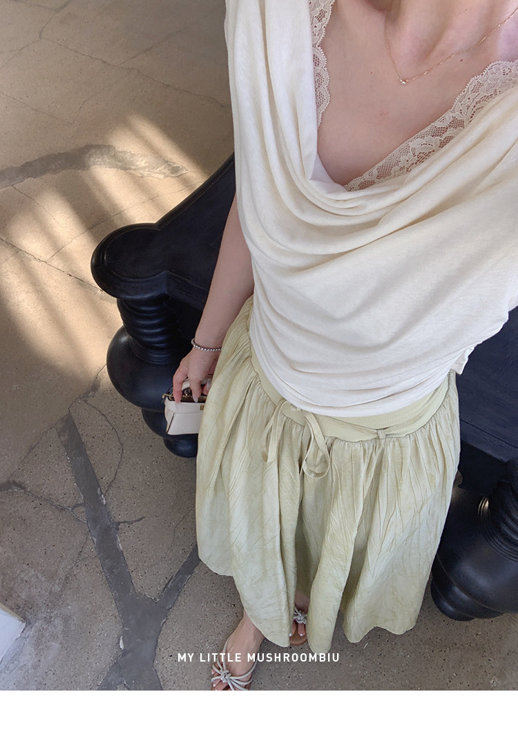 金蘑菇菇 这是一个有着香气的晚上 少女感通勤荡领/背后可收腰t
