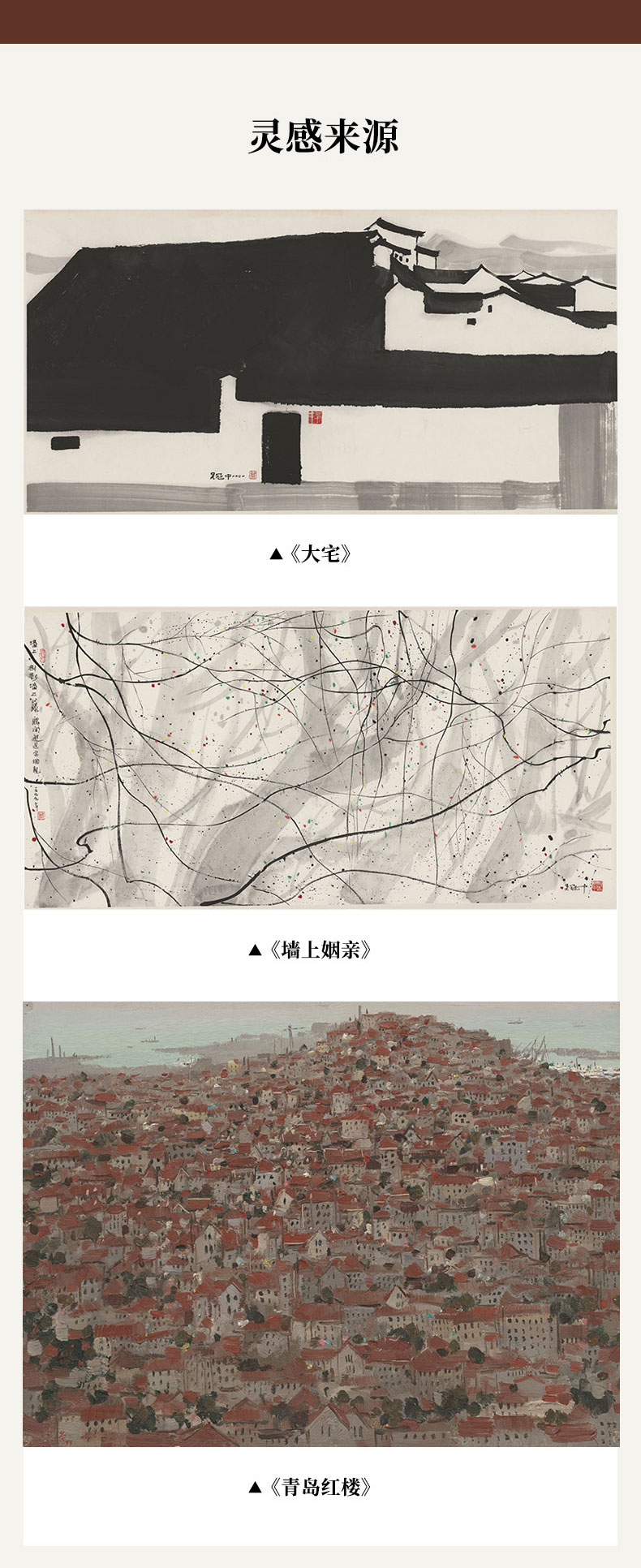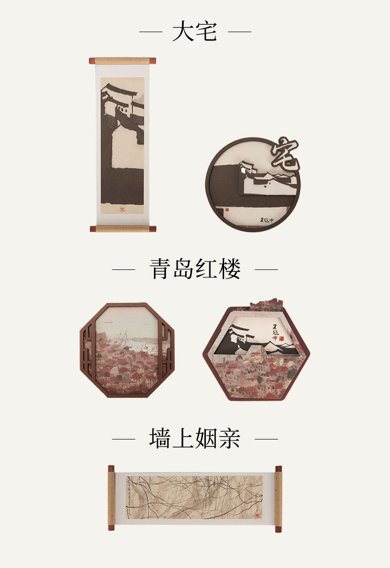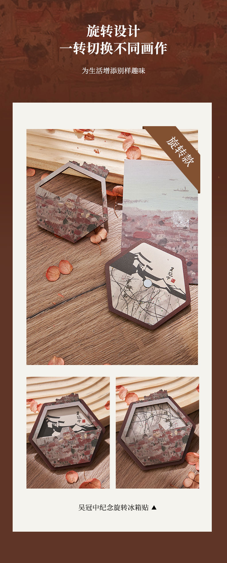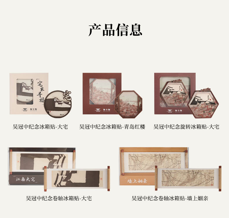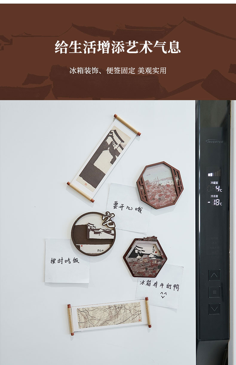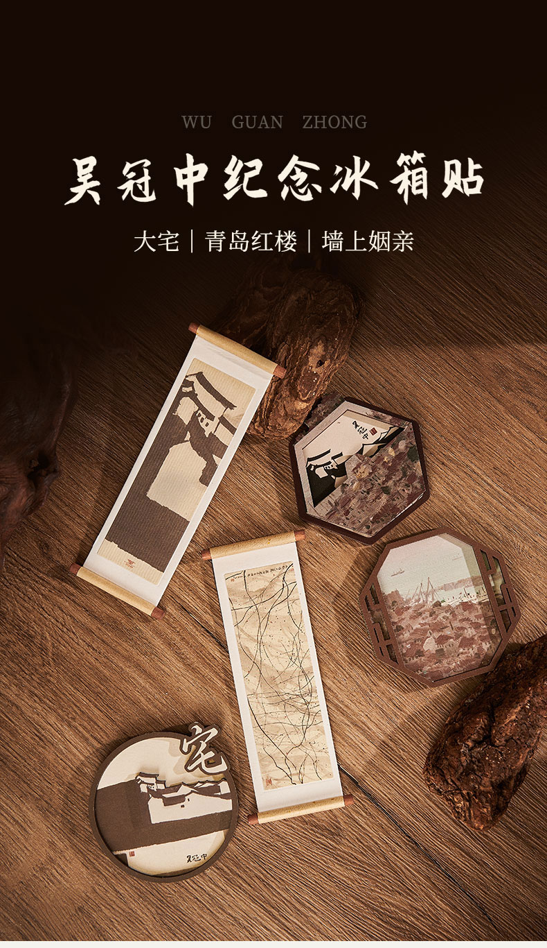 吴冠中 纪念大宅 青岛红楼 墙上姻亲系列 木质卷轴 冰箱贴5款 家居饰品 居家装饰