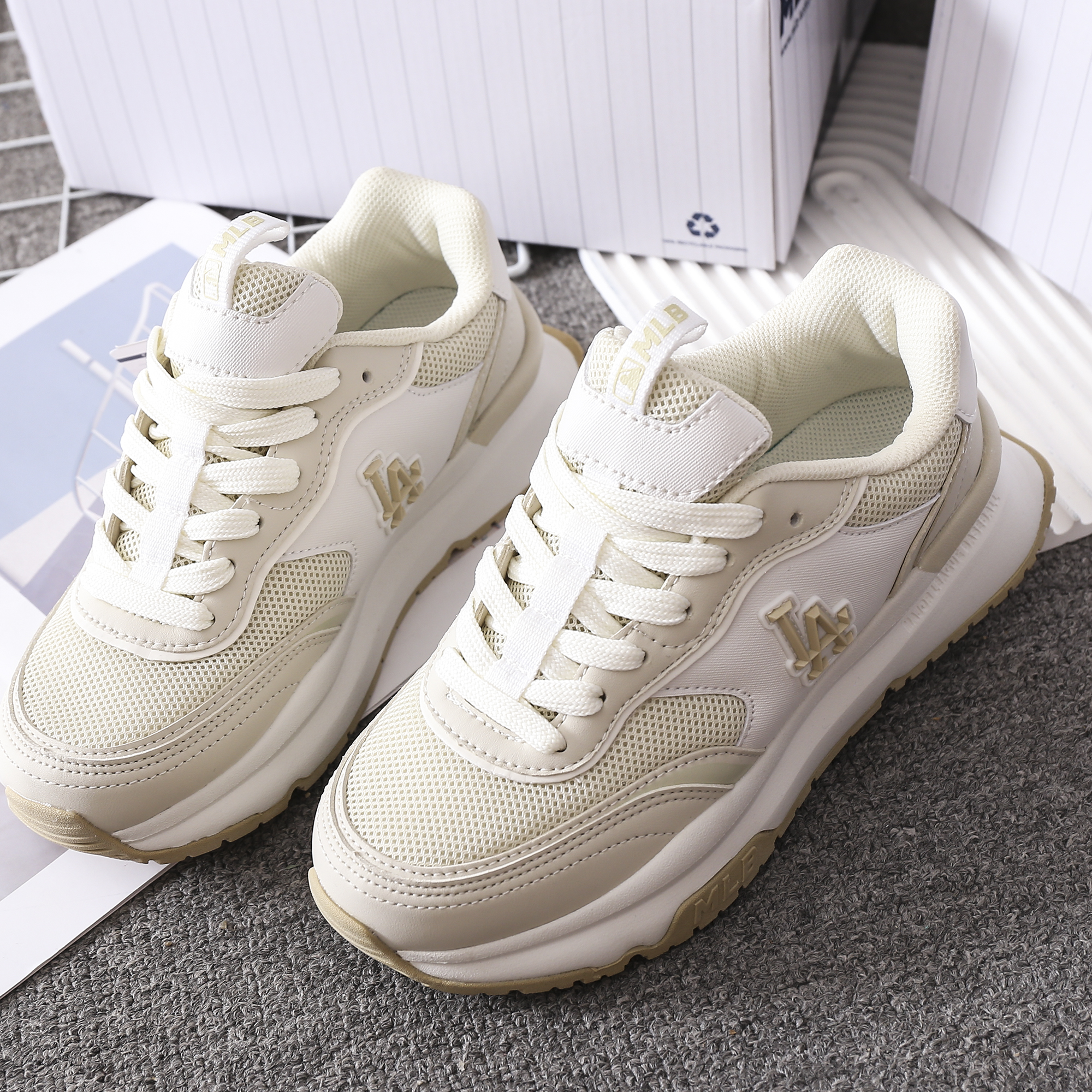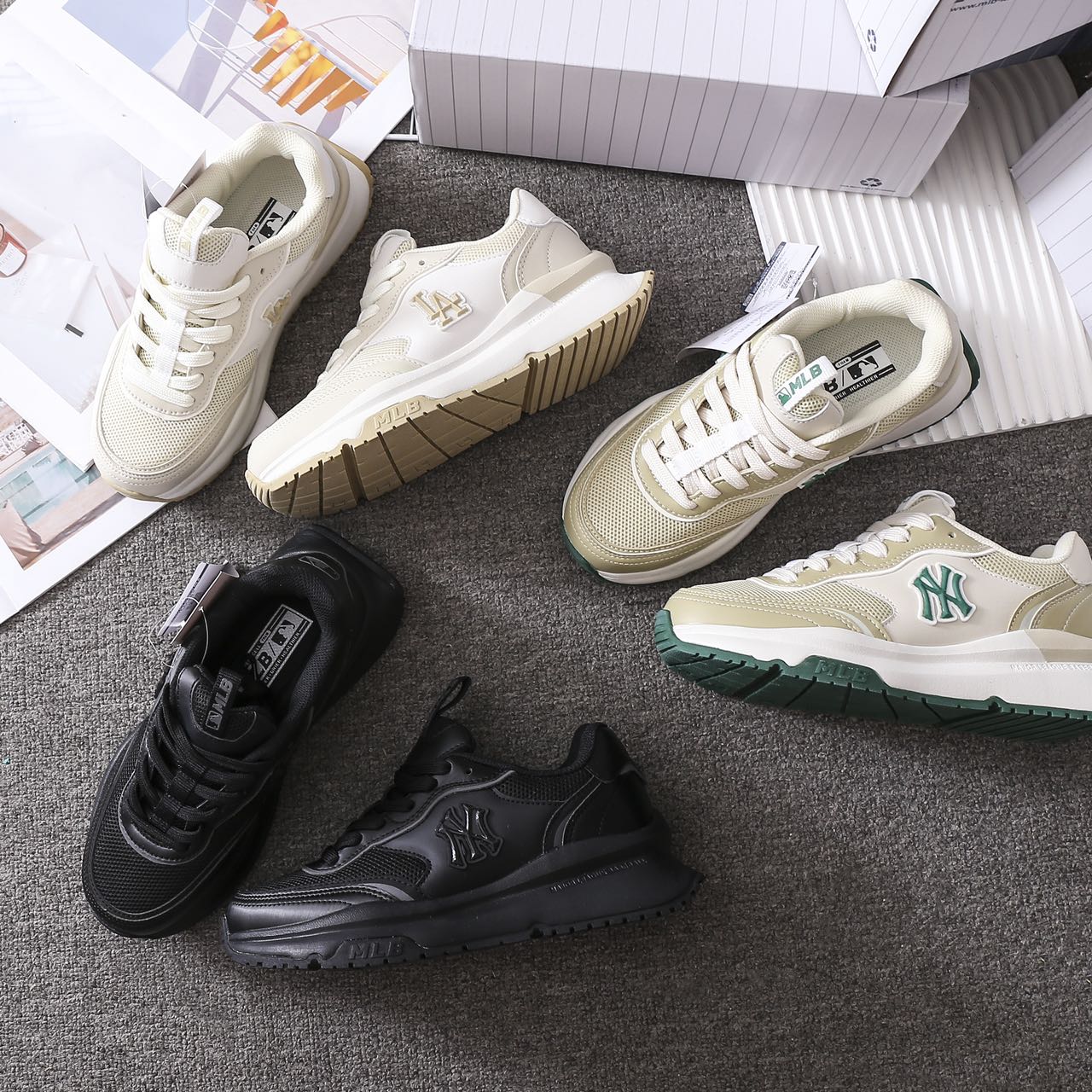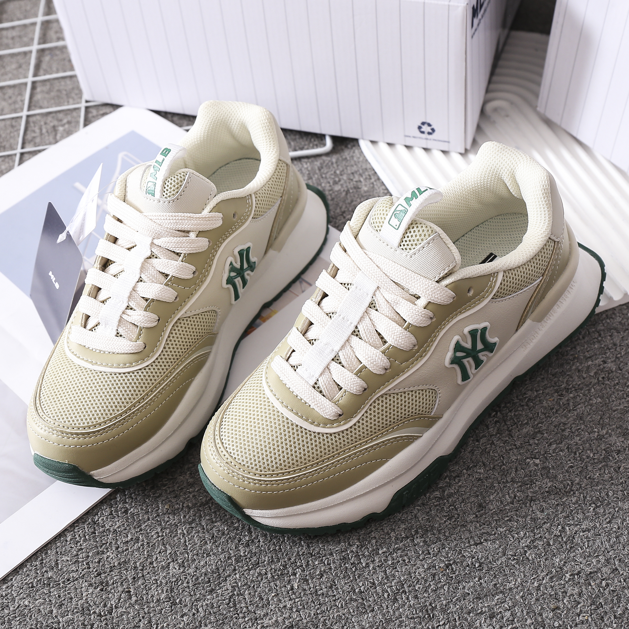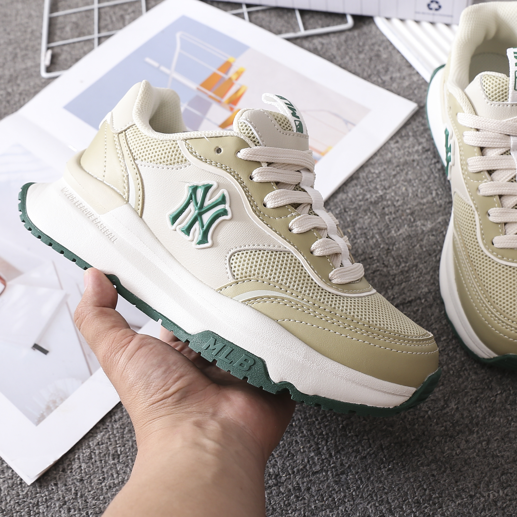 上脚超赞超时尚的#MLB拼接网面跑鞋!不买后悔一年‼️ 🔥各种风格随意切换🔥男女皆可穿💞轻松get你的city walk‼️