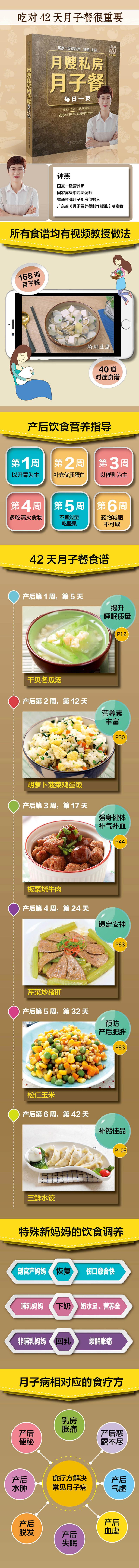 书中详细给出了42天168道月子餐,每天不重样,且营养丰富全面。与此同时,还为剖宫产妈妈、哺乳妈妈、因不抗力不得已断哺乳的妈妈提供特定食谱。此外,针对不同病症也给出了相应食疗方,让新妈妈安心哺乳,不用担心影响宝宝健康。另外,还有视频详细讲解食谱步骤,让做月子餐变得更简单。
