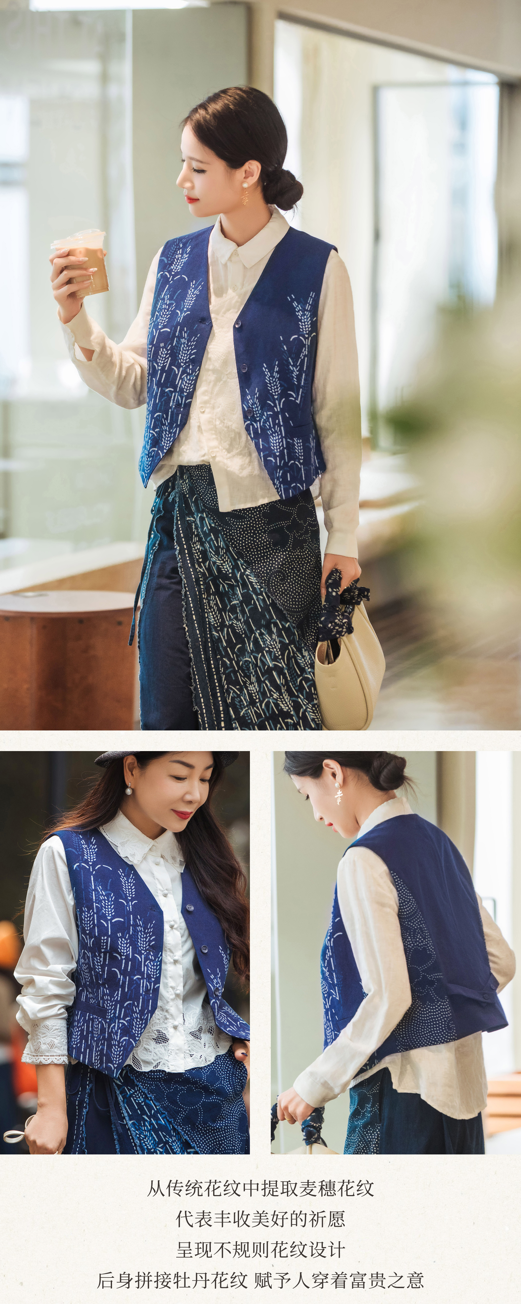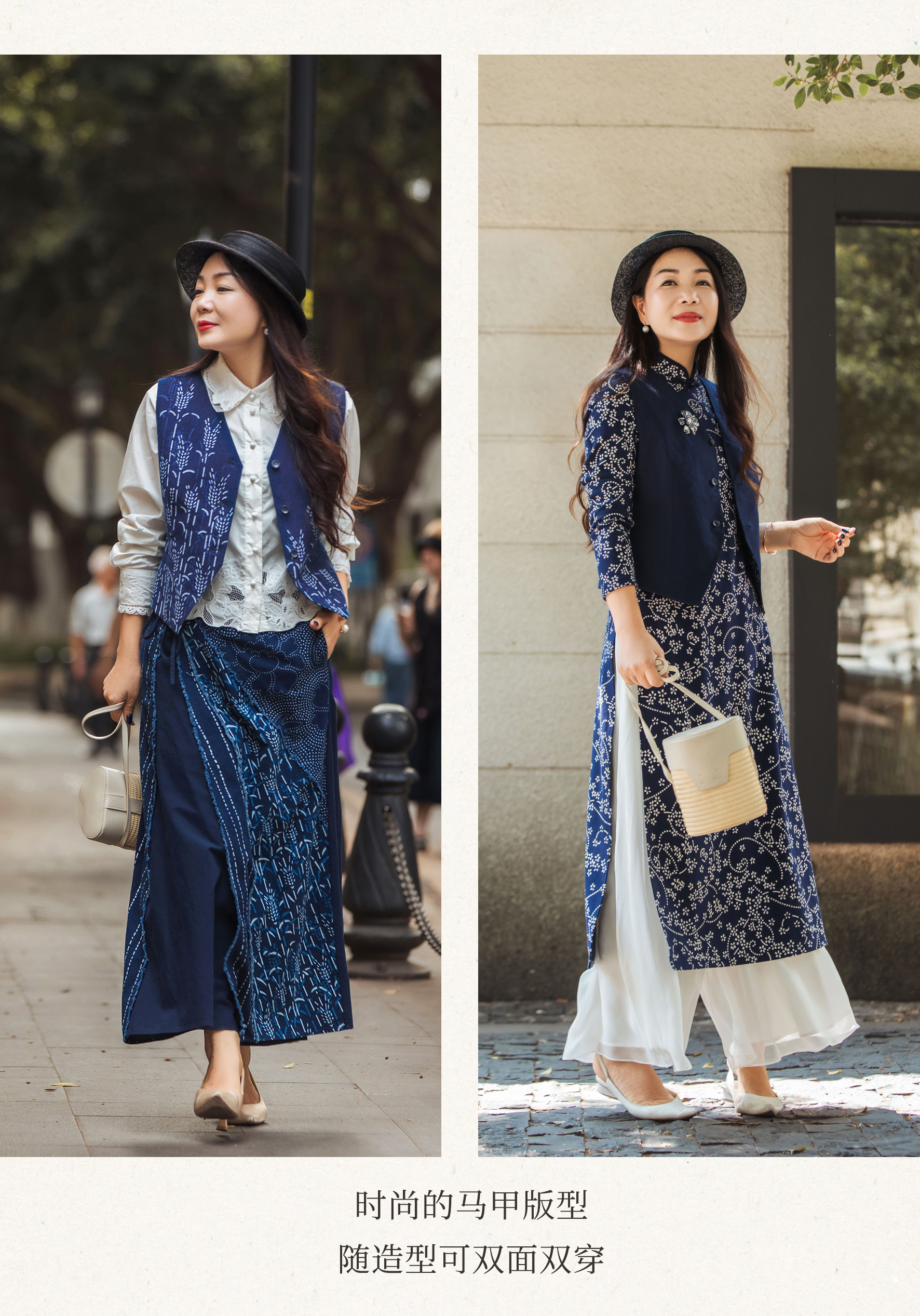 【林栖设计小店】【林栖推荐】【现货】蓝印花布传统百搭2025春季新品双面双穿马甲背心女1951162