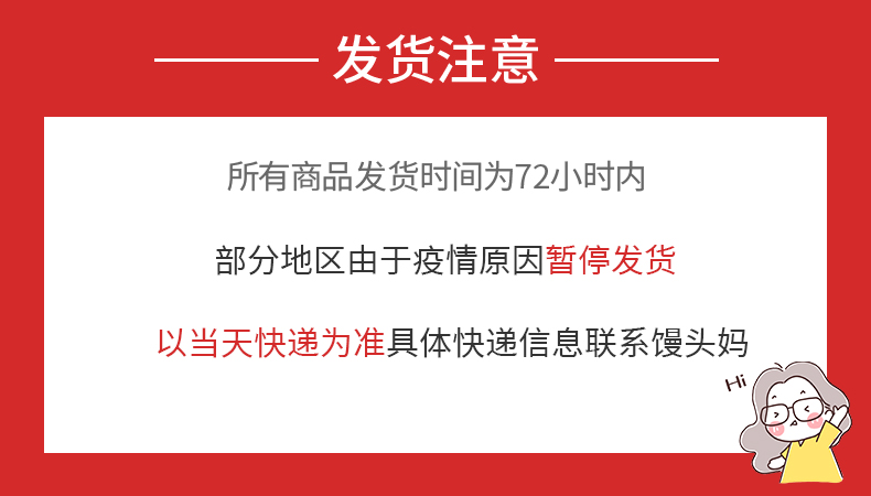 若外包装破损请直接拒签,并拍照联系馒头妈处理!