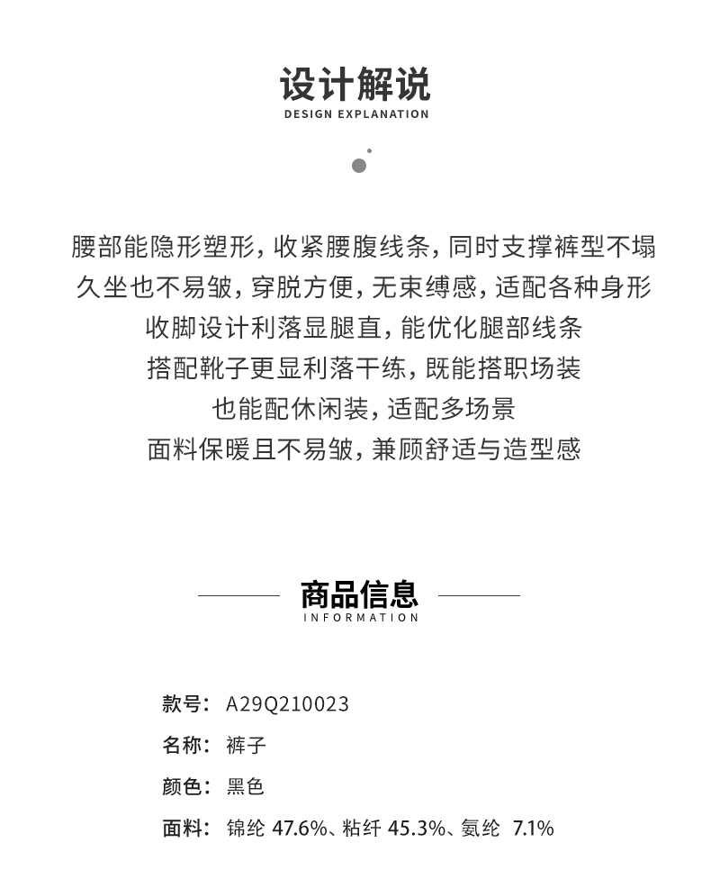 【商场同款】阿菁娜冬季新款隐形塑形裤收脚设计显腿直久坐不皱无束缚通勤休闲两穿A29Q210023