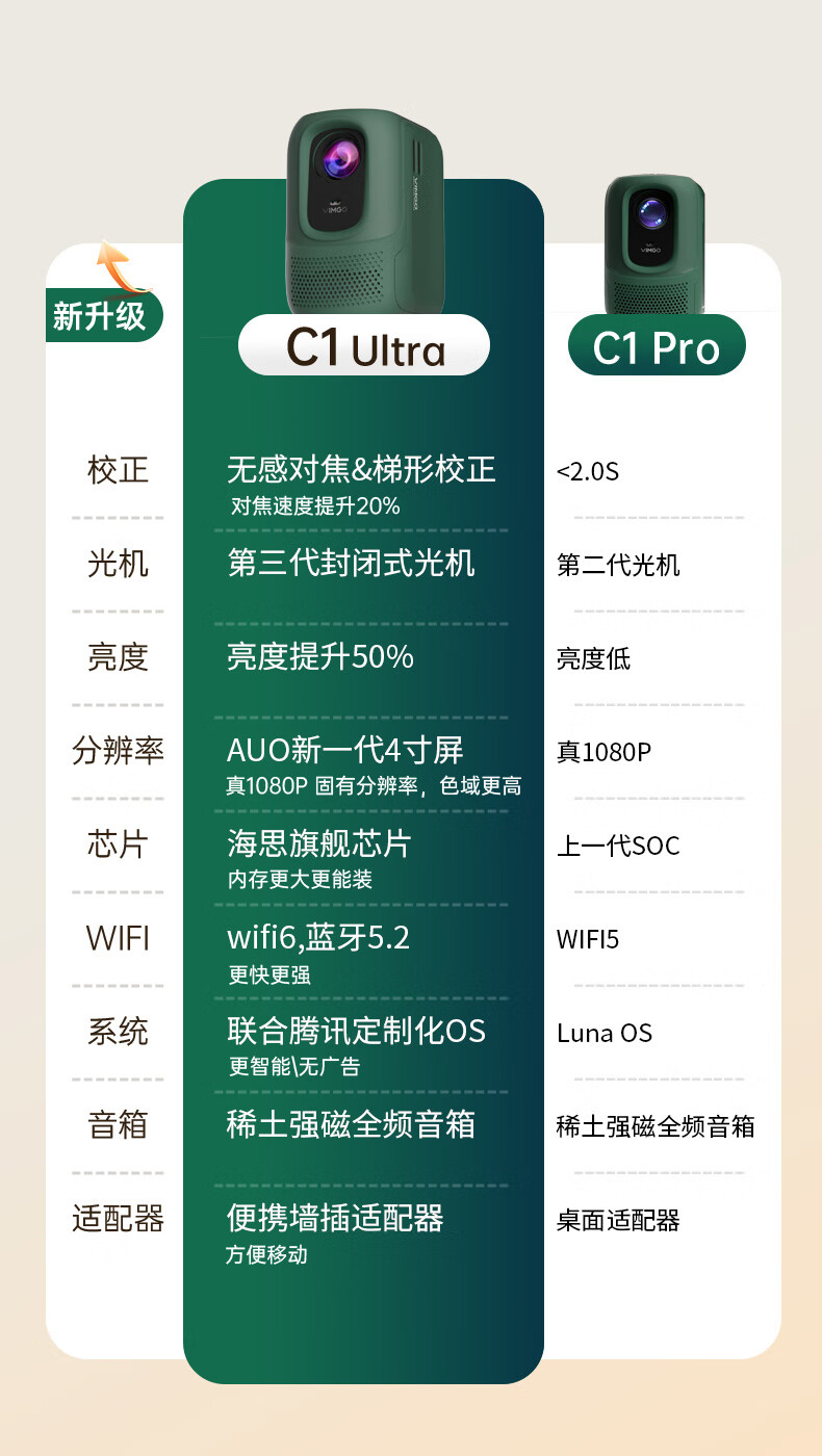 【新品上市】微果(VIMGO)C1 Ultra投影仪高清投影仪家用办公智能家庭影院客厅卧室手机可投屏